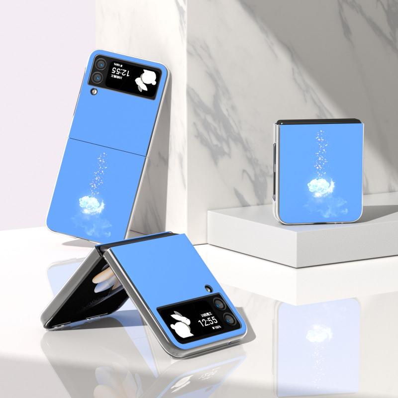 For Samsung Galaxy Z Flip4 5G Painted Pattern PC Phone Case(Blue Flower)