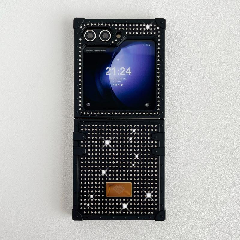 For Samsung Galaxy Z Flip4 5G PC Full Diamond Shockproof Folding Phone Case with Diamond Logo(Black)
