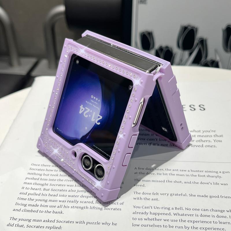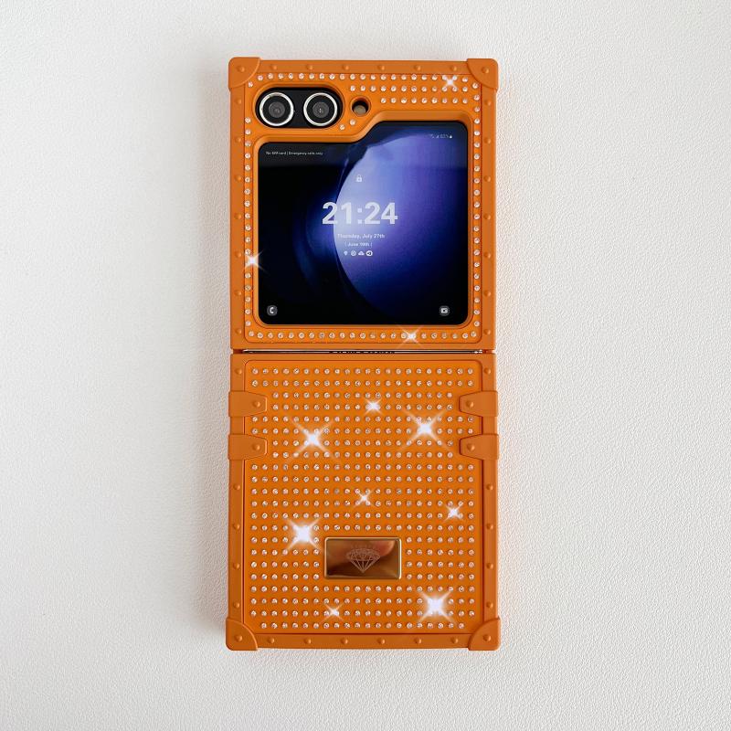 For Samsung Galaxy Z Flip4 5G PC Full Diamond Shockproof Folding Phone Case with Diamond Logo(Orange)