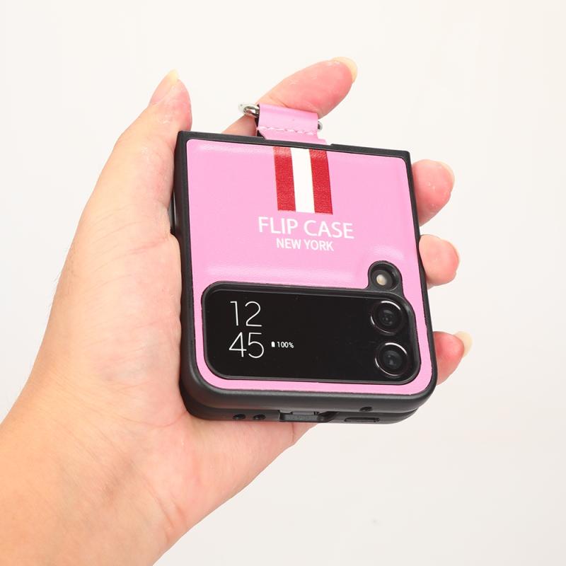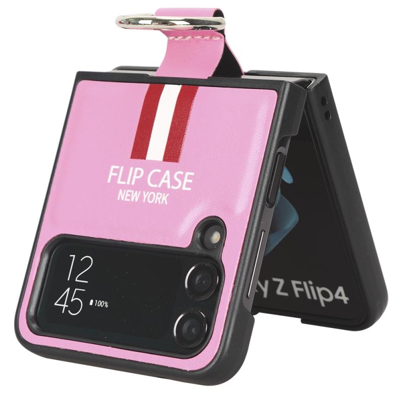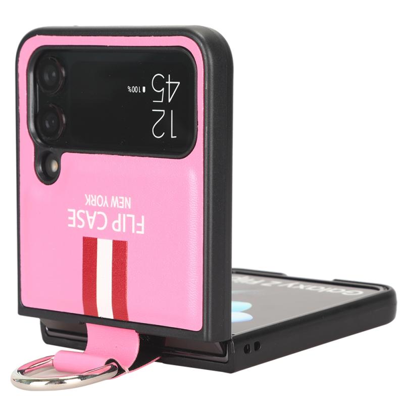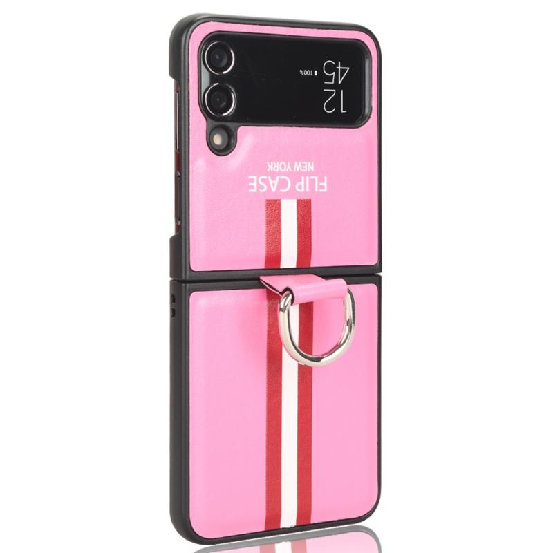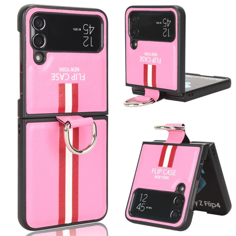 For Samsung Galaxy Z Flip4 5G Plain Leather Ring Phone Case(Pink)