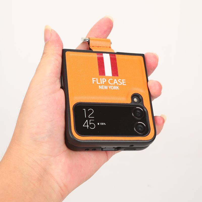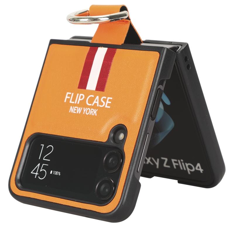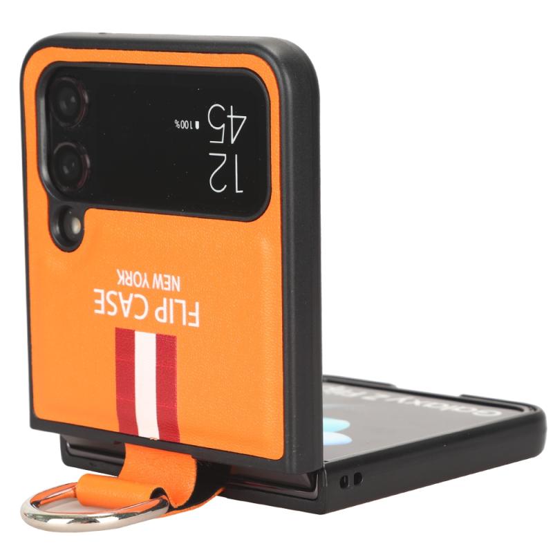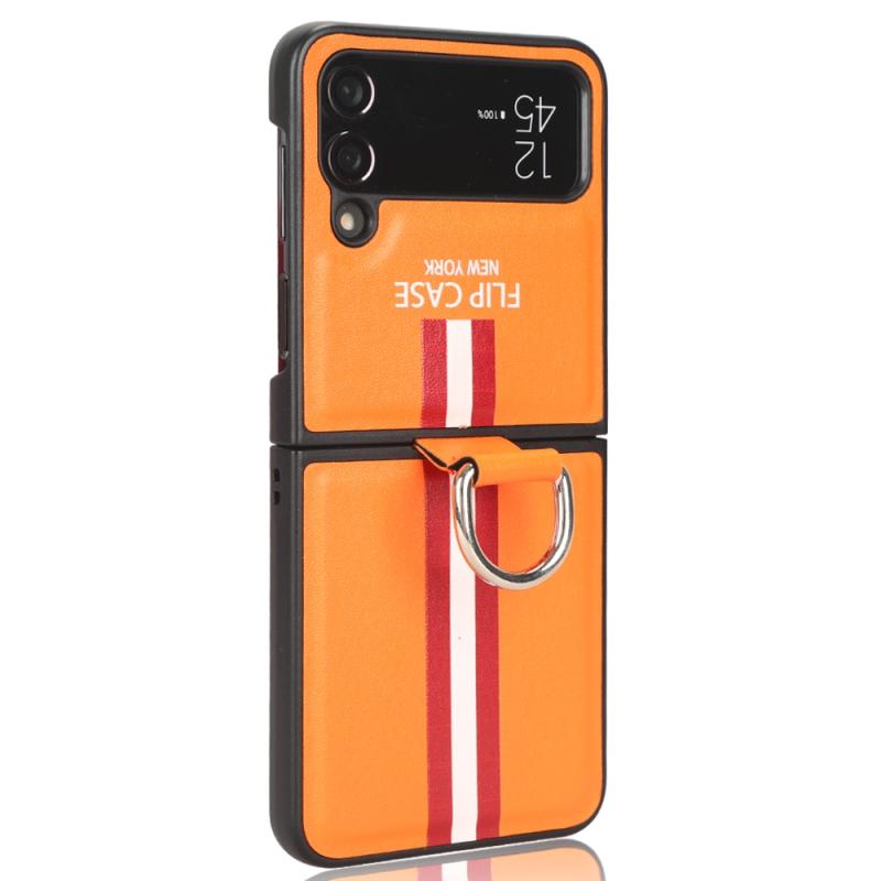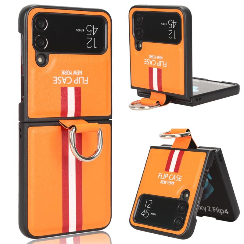For Samsung Galaxy Z Flip4 5G Plain Leather Ring Phone Case(Yellow)