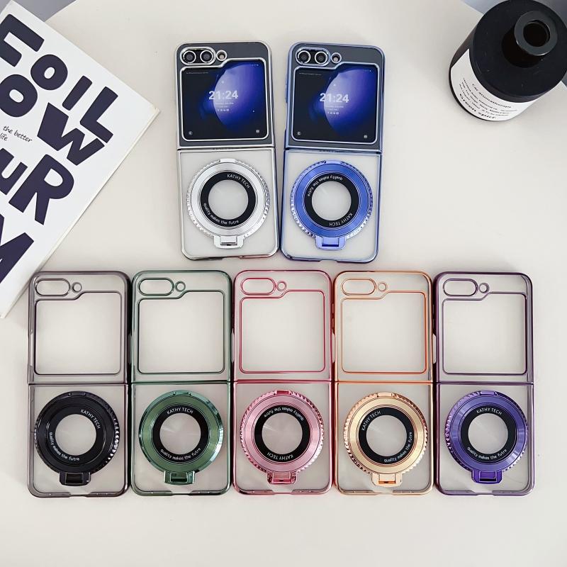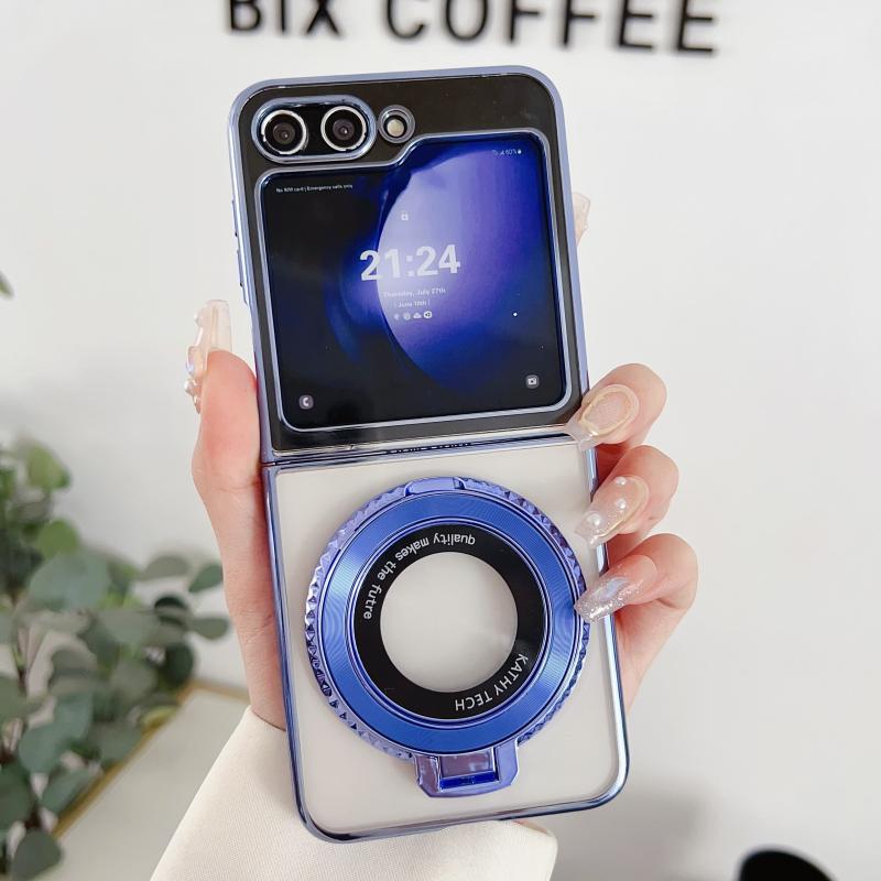 For Samsung Galaxy Z Flip4 5G Plating Fold MagSafe Rotating Holder PC Shockproof Phone Case(Blue)