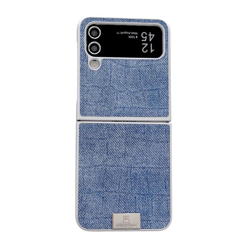 For Samsung Galaxy Z Flip4 5G Silver Frame Denim PU + PC Phone Case(Blue)