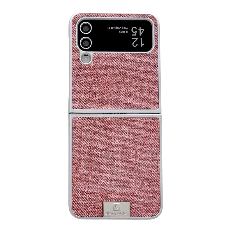 For Samsung Galaxy Z Flip4 5G Silver Frame Denim PU + PC Phone Case(Pink)