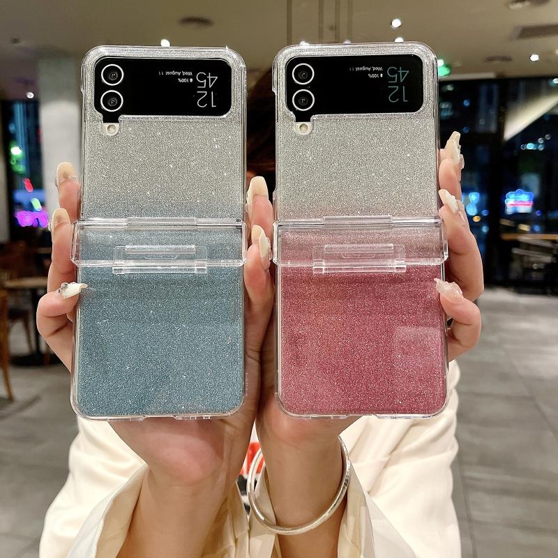 For Samsung Galaxy Z Flip4 5G Skin Feel PC Flash Paper Shockproof Phone Case(Pink Silver Gradient)