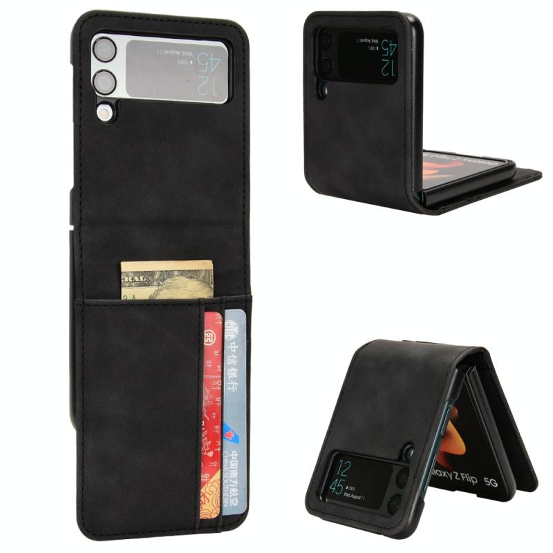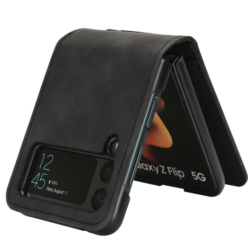 For Samsung Galaxy Z Flip4 5G Skin-feeling Half-split External Card Slot Folding Phone Case(Black)