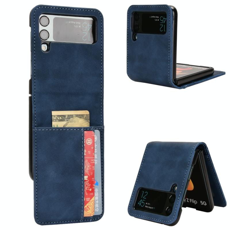 For Samsung Galaxy Z Flip4 5G Skin-feeling Half-split External Card Slot Folding Phone Case(Blue)