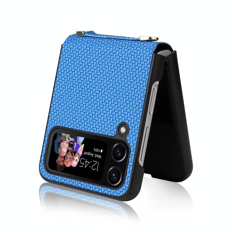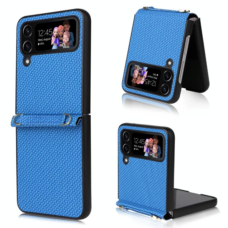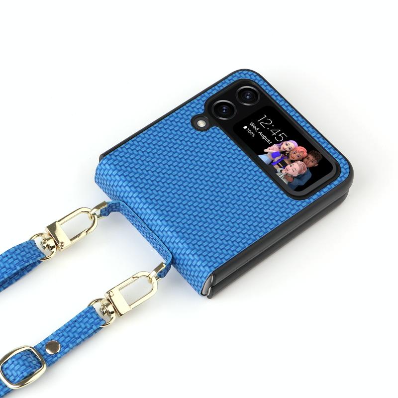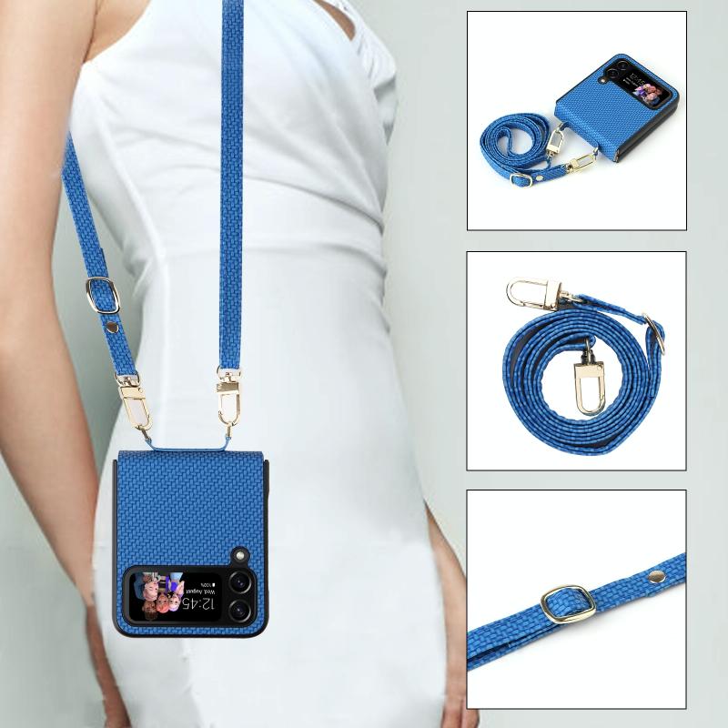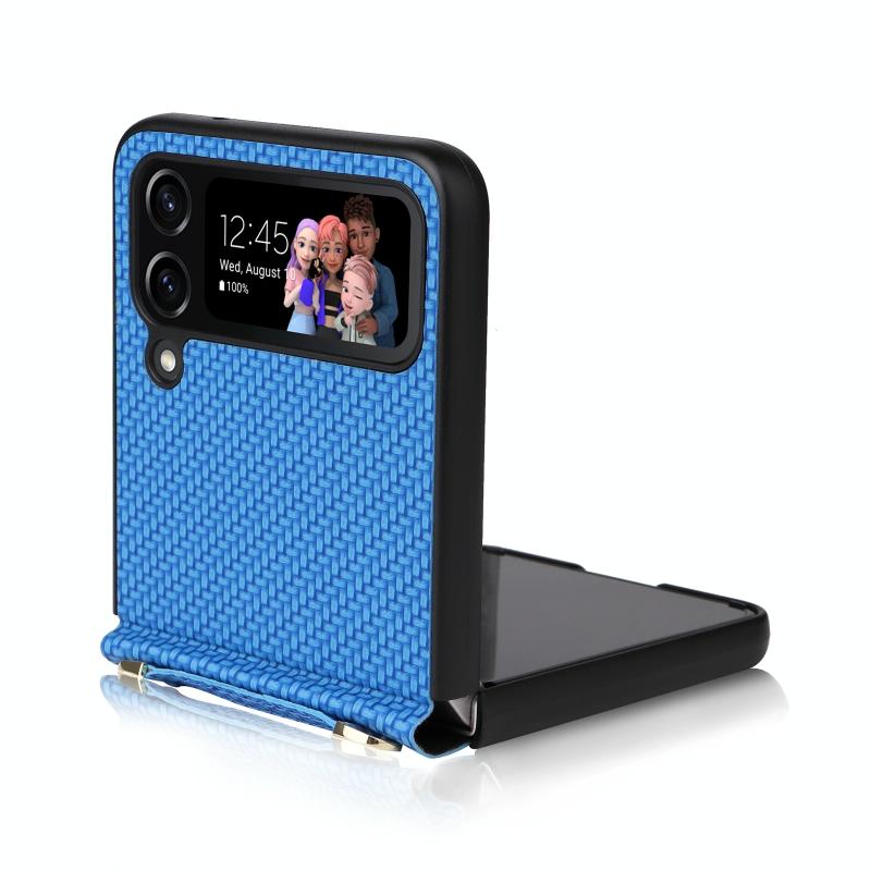 For Samsung Galaxy Z Flip4 5G Straw Mat Texture Lanyard Phone Case(Blue)