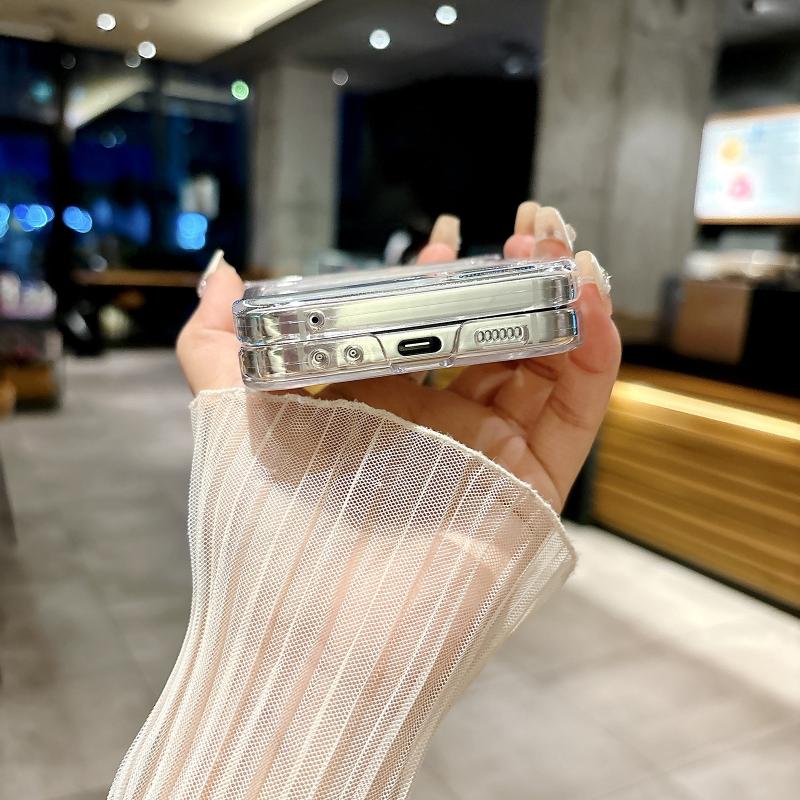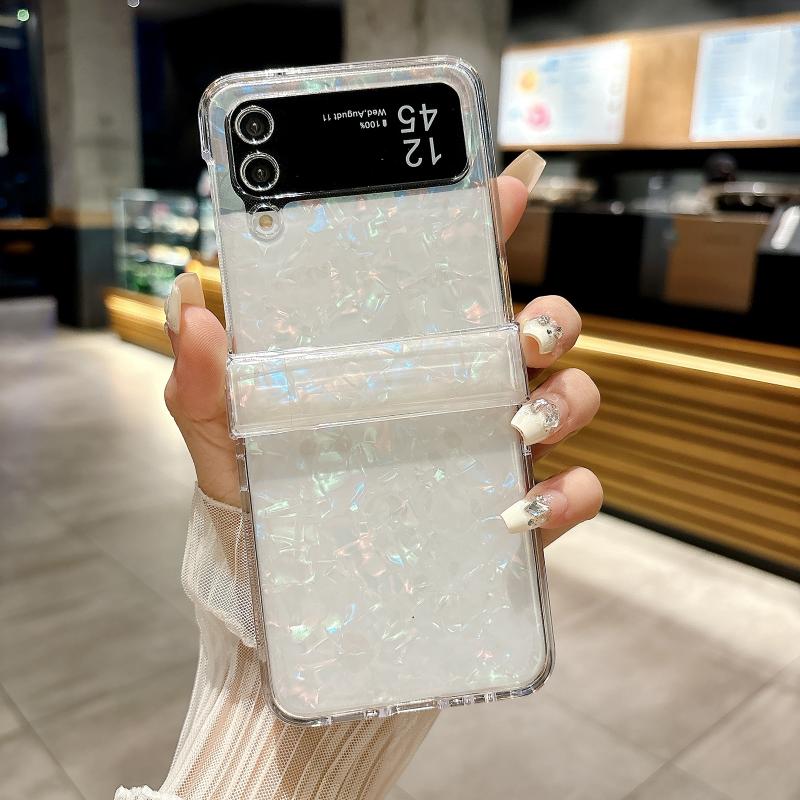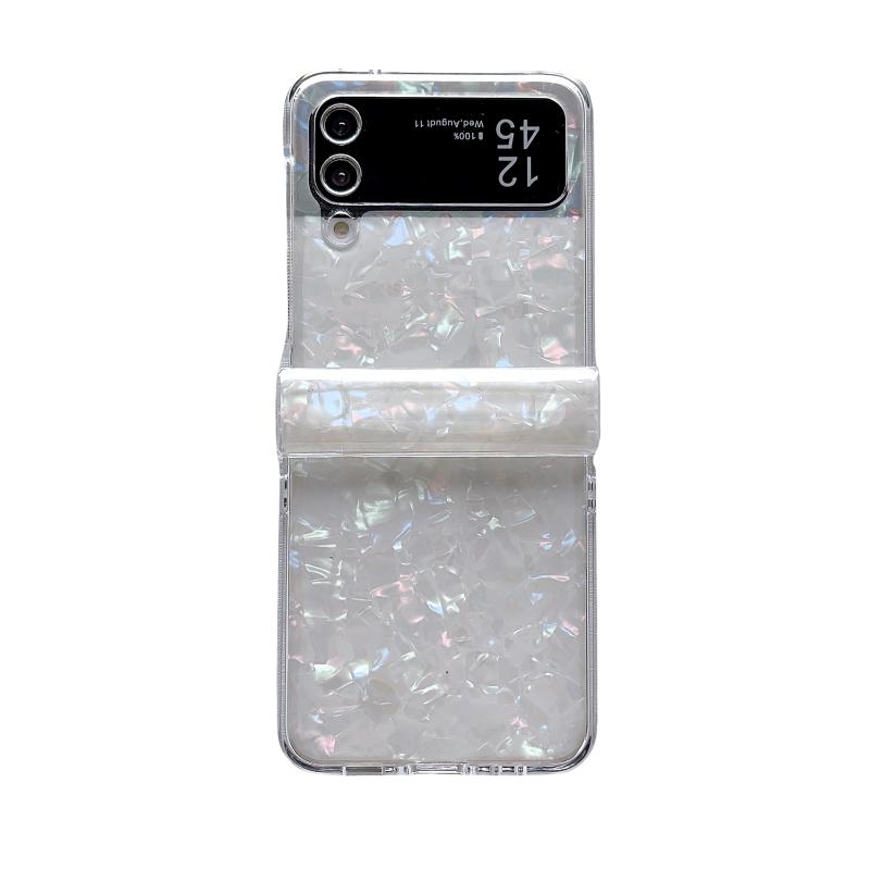 For Samsung Galaxy Z Flip4 5G Three-piece Set Pearlescent Shell Texture Phone Case(Beige)
