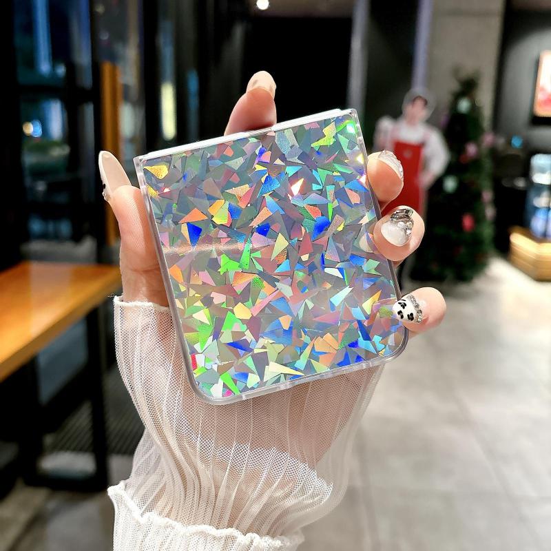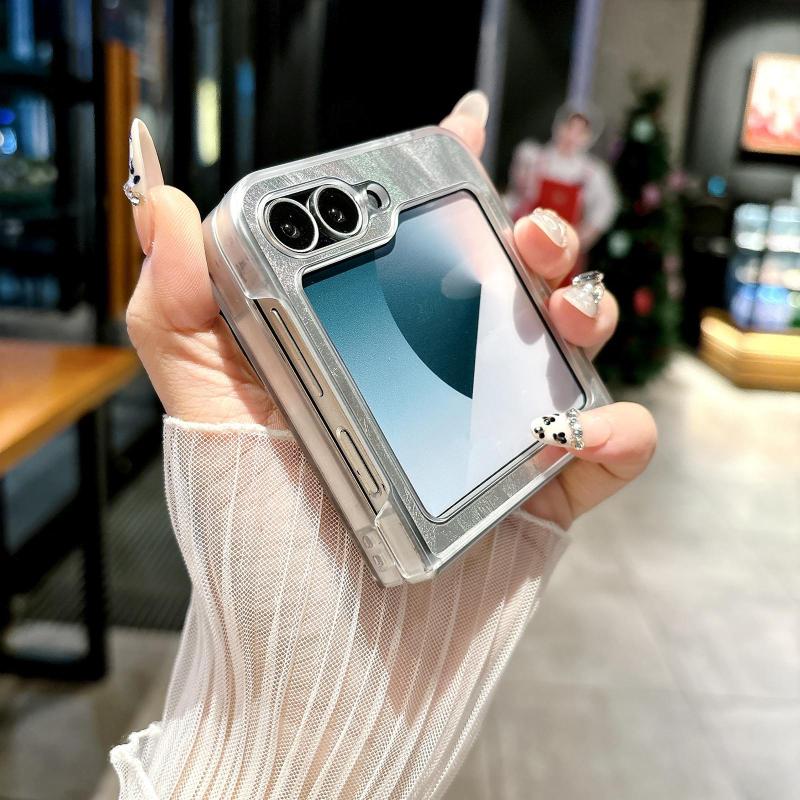 For Samsung Galaxy Z Flip4 5G Transparent Edge PC Folding Phone Case(Feather Yarn)
