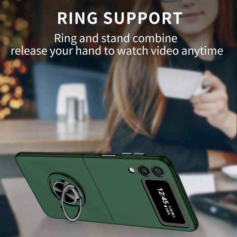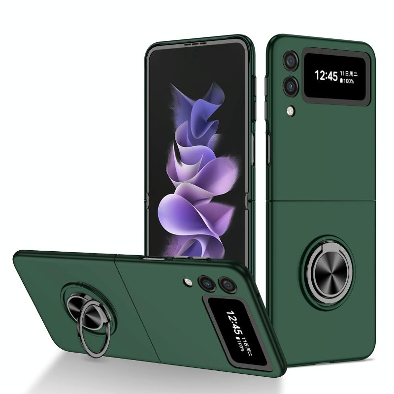 For Samsung Galaxy Z Flip4 Armor Ring Holder Phone Case(Dark Green)