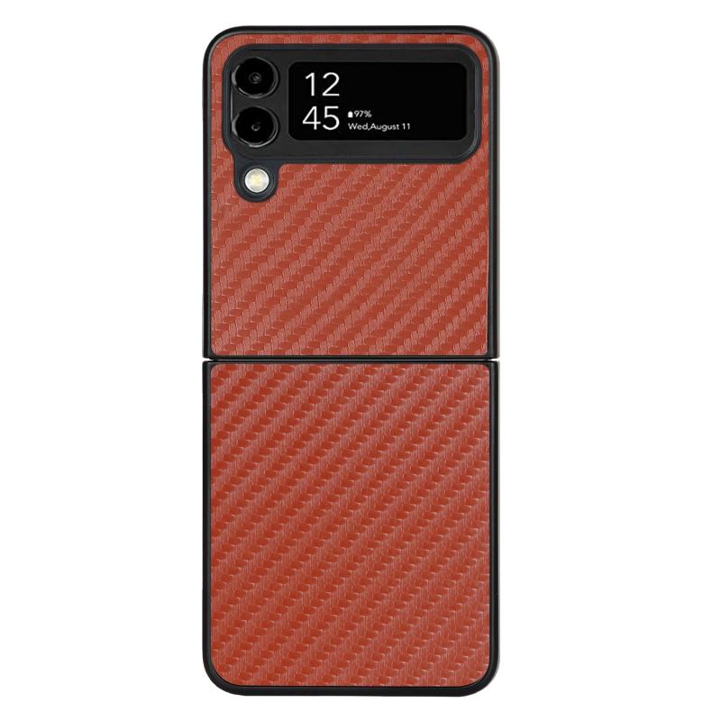For Samsung Galaxy Z Flip4 Carbon Fiber Texture Leather Folded Phone Case(Brown)