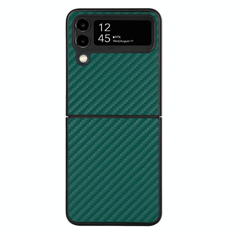 For Samsung Galaxy Z Flip4 Carbon Fiber Texture Leather Folded Phone Case(Dark Green)