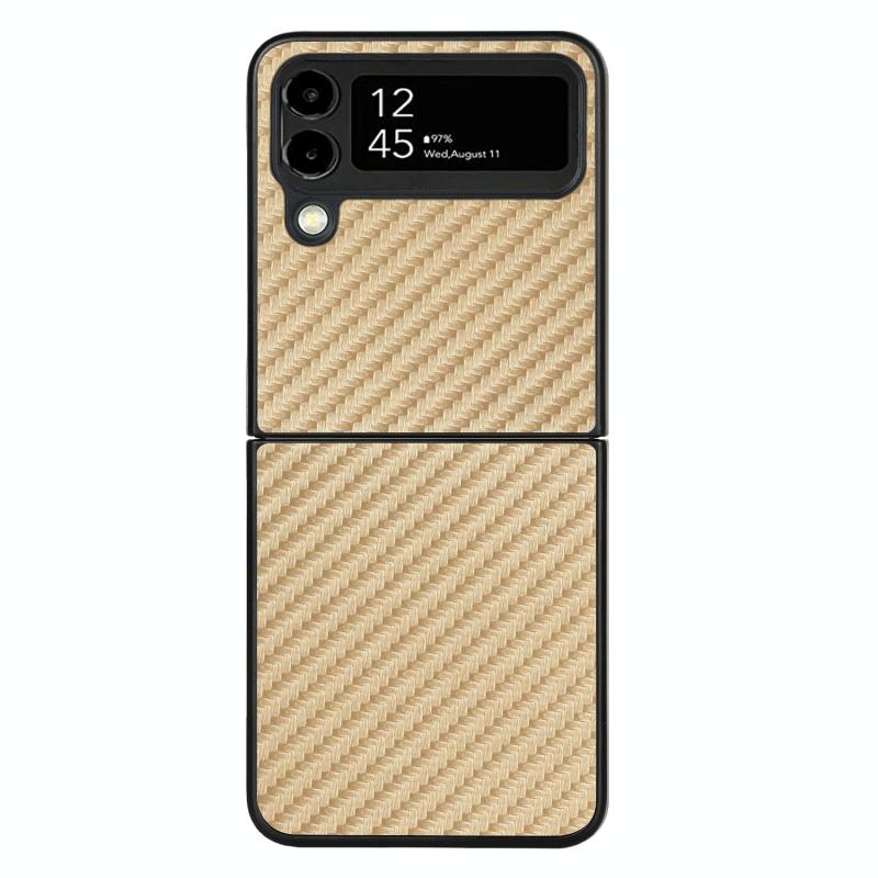 For Samsung Galaxy Z Flip4 Carbon Fiber Texture Leather Folded Phone Case(Khaki)