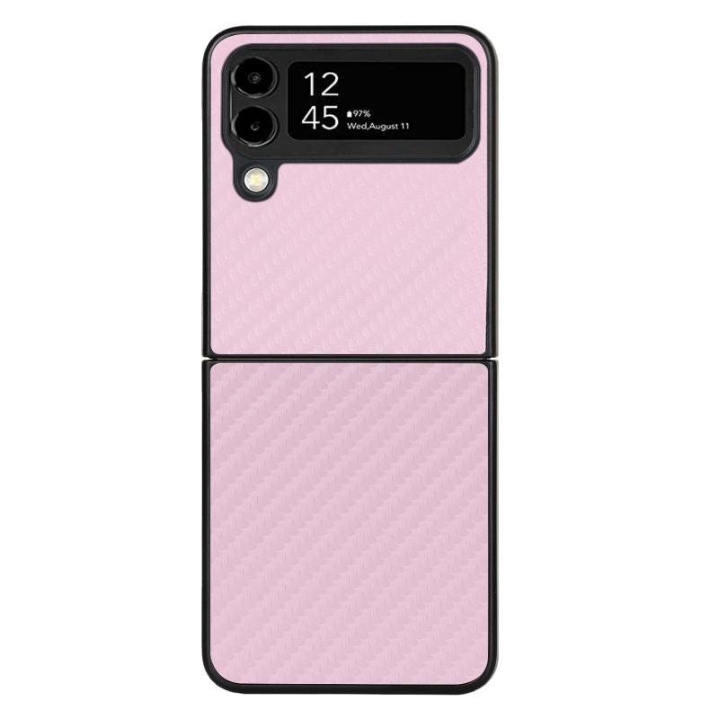 For Samsung Galaxy Z Flip4 Carbon Fiber Texture Leather Folded Phone Case(Pink)