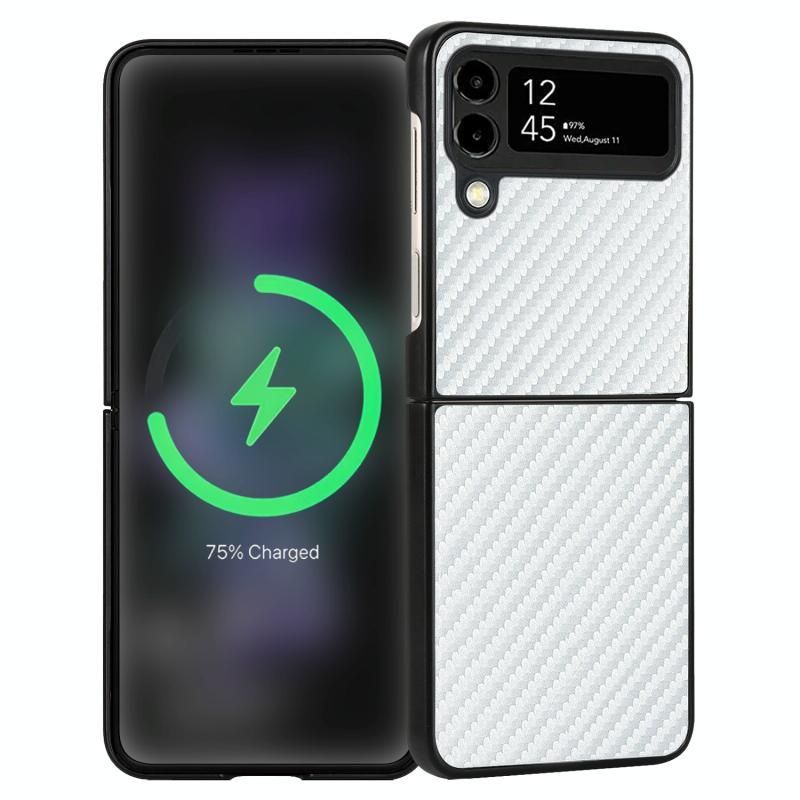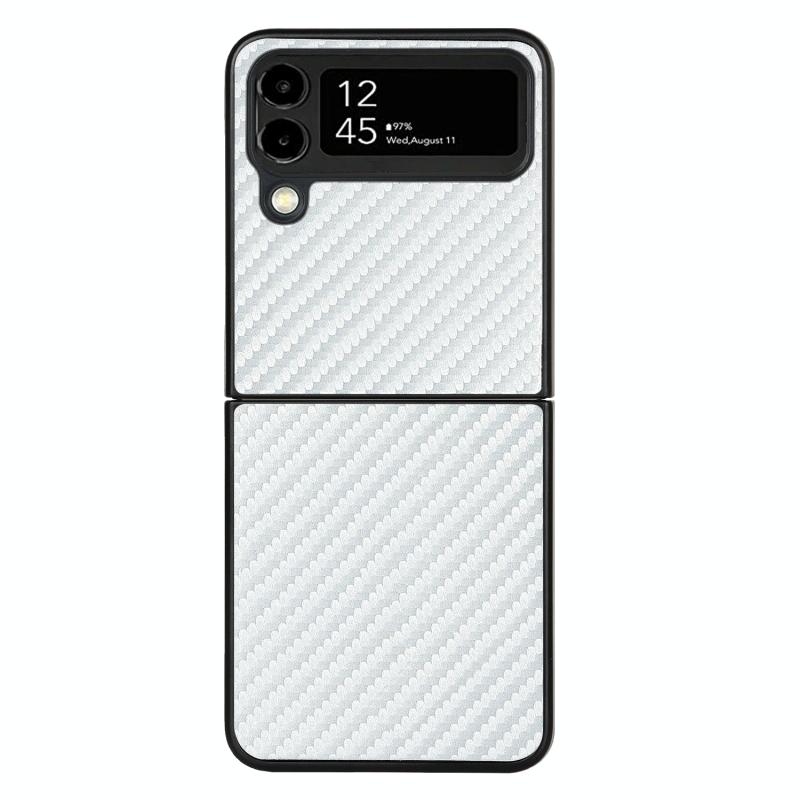 For Samsung Galaxy Z Flip4 Carbon Fiber Texture Leather Folded Phone Case(White)