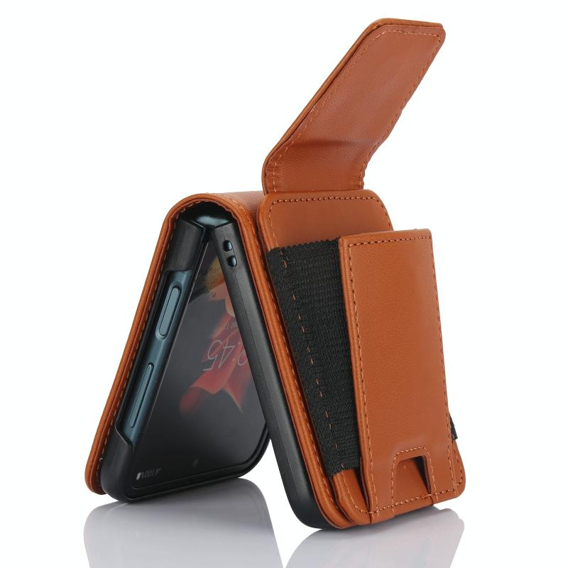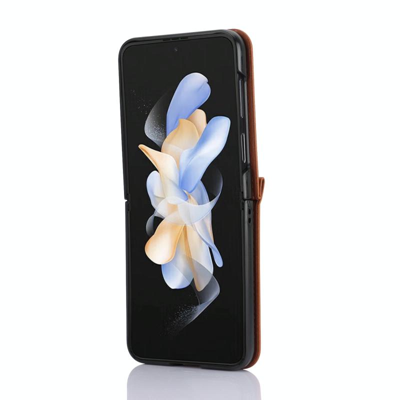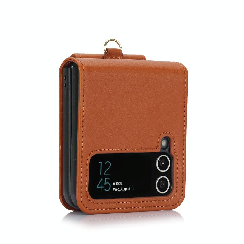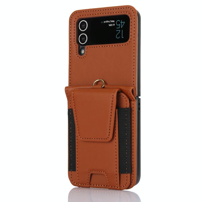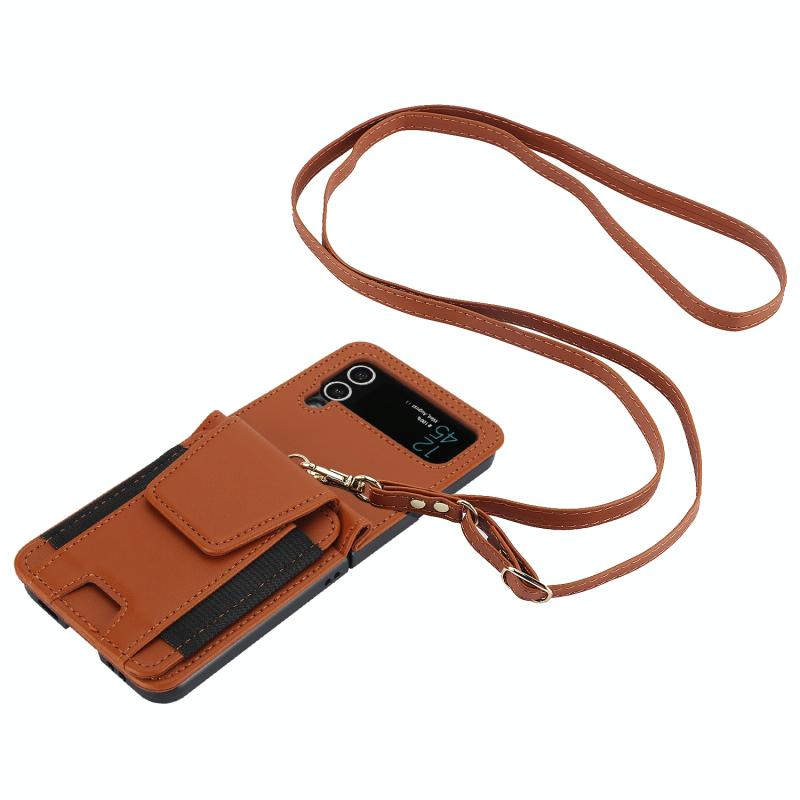 For Samsung Galaxy Z Flip4 Card Slots Folding Phone Case with Long Lanyard(Brown)