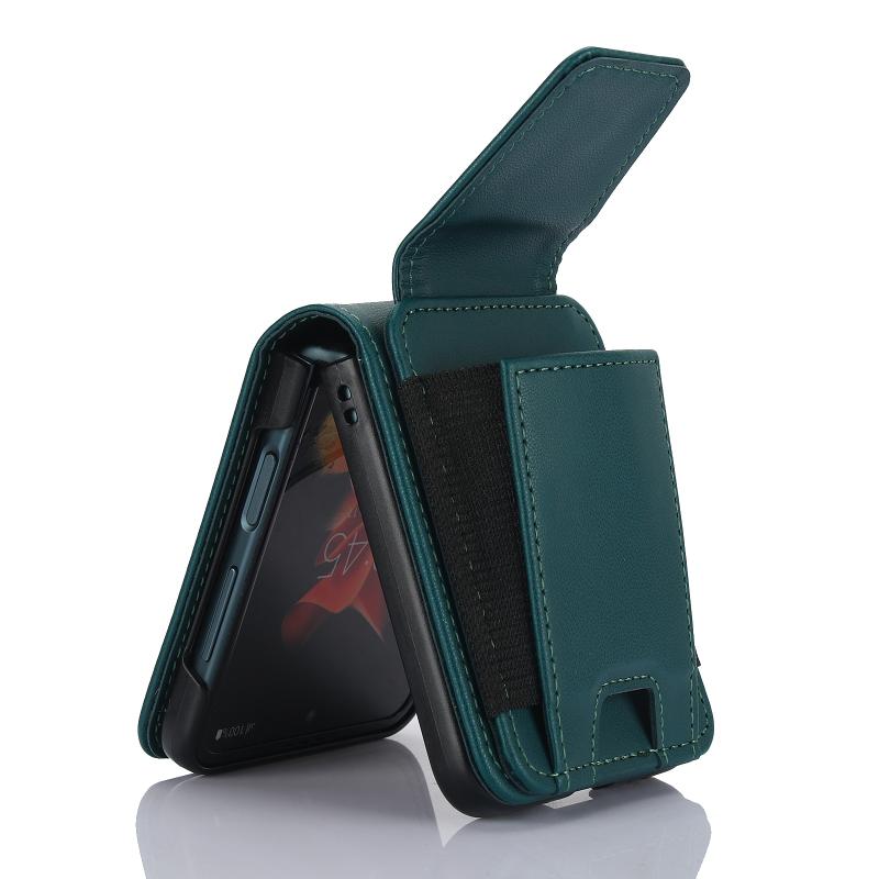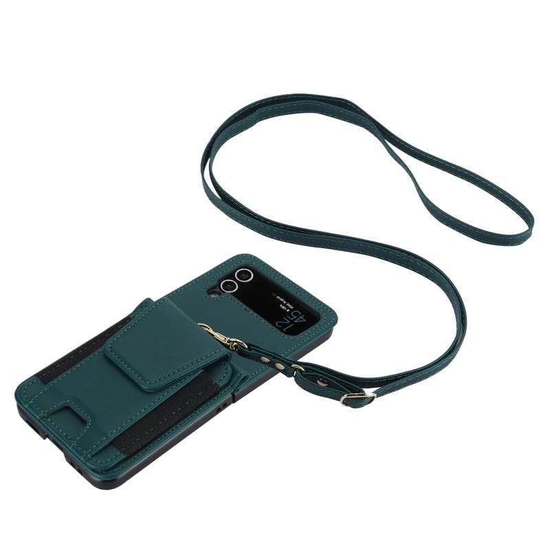 For Samsung Galaxy Z Flip4 Card Slots Folding Phone Case with Long Lanyard(Green)
