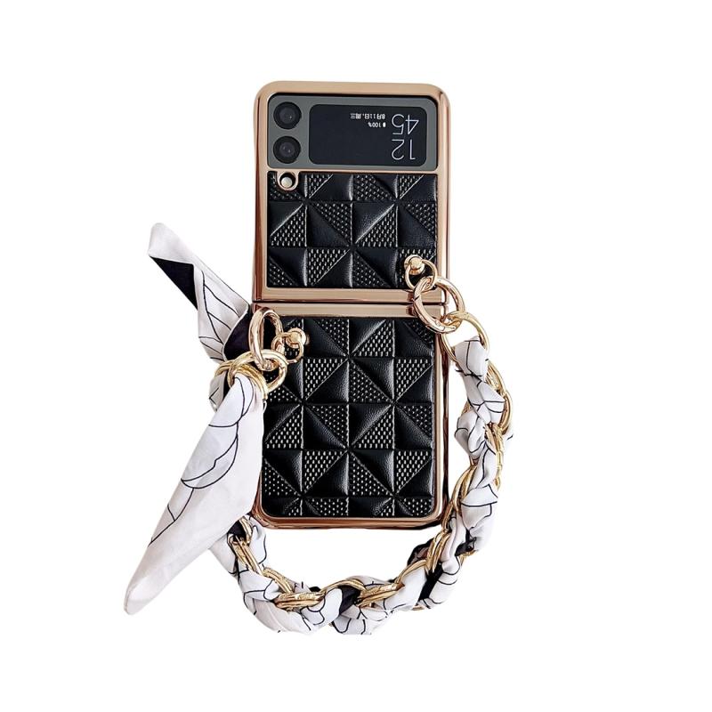For Samsung Galaxy Z Flip4 Checkered Scarf Bracelet Phone Case(Black)