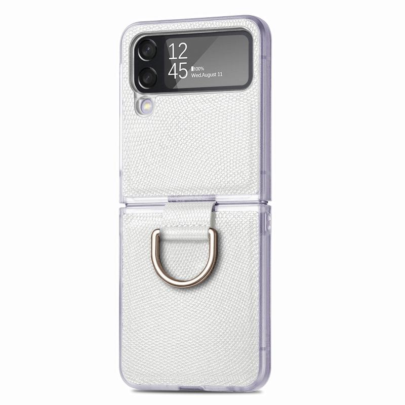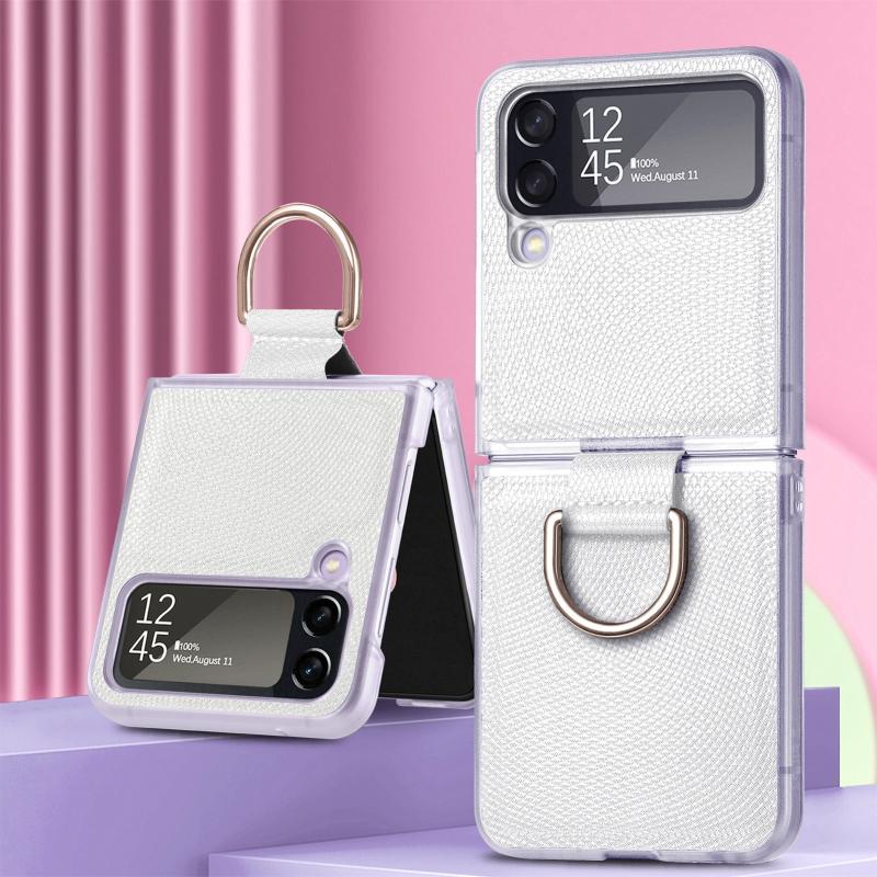 For Samsung Galaxy Z Flip4 Colorful Ring Hinged Folding Phone Case(White)