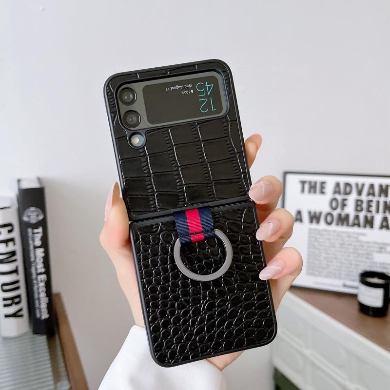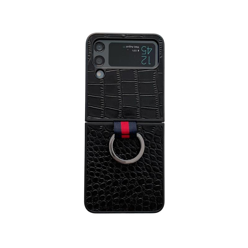 For Samsung Galaxy Z Flip4 Crocodile Texture Genuine Leather Phone Case with Ring(Black)