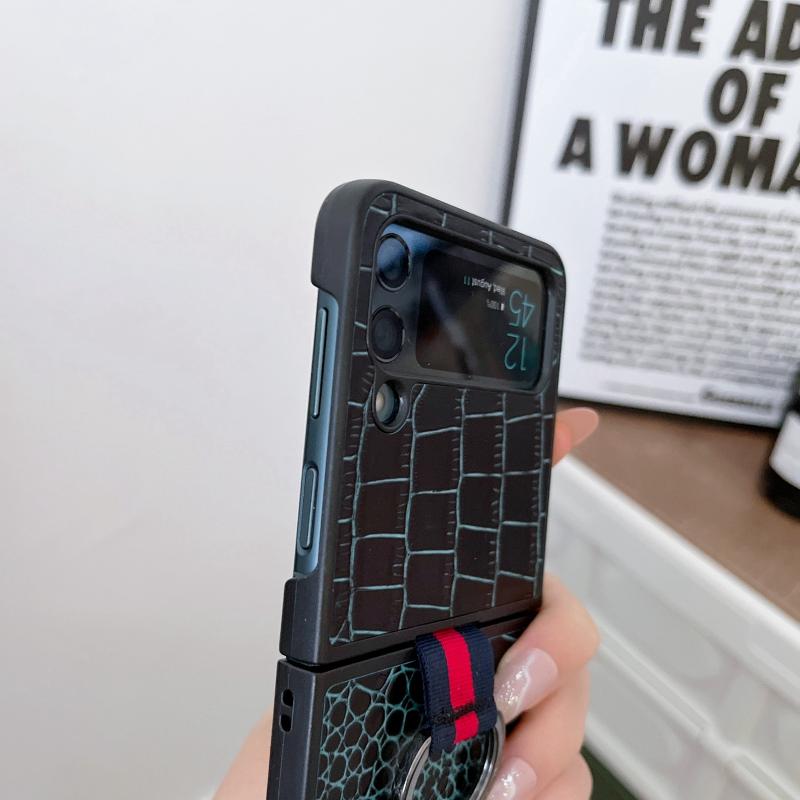 For Samsung Galaxy Z Flip4 Crocodile Texture Genuine Leather Phone Case with Ring(Cyan Blue)