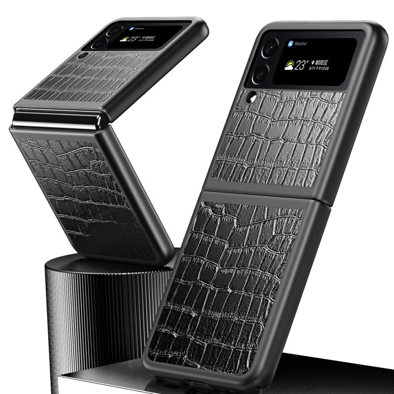 For Samsung Galaxy Z Flip4 Crocodile Texture Leather Folding Protective Phone Case(Green)