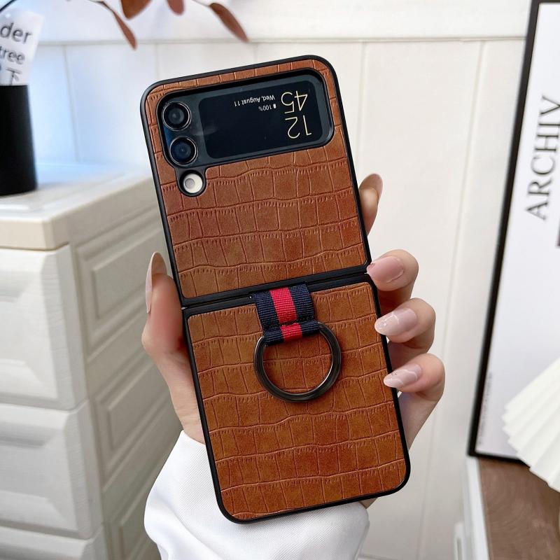 For Samsung Galaxy Z Flip4 Crocodile Texture PU Phone Case With Ring(Brown)