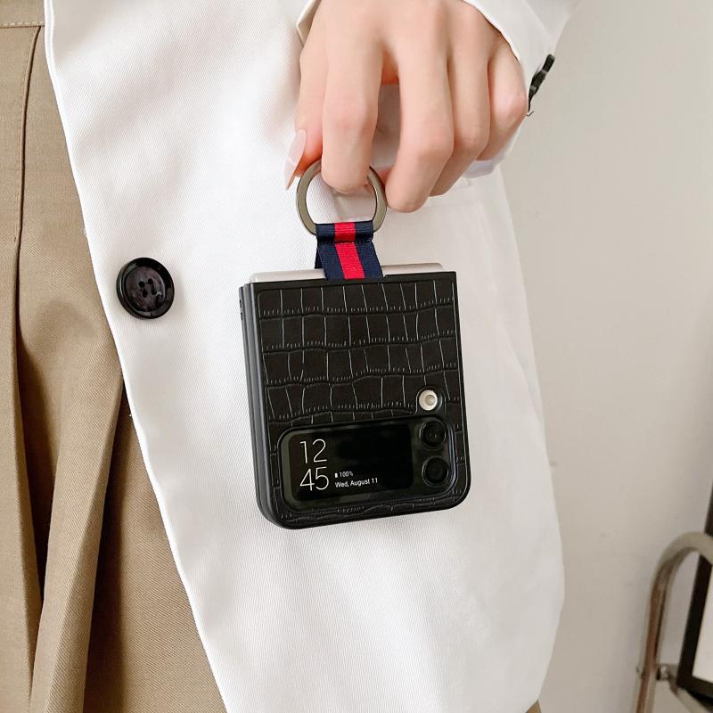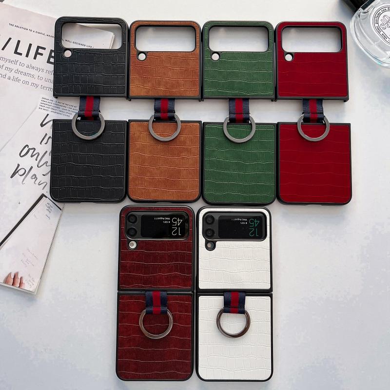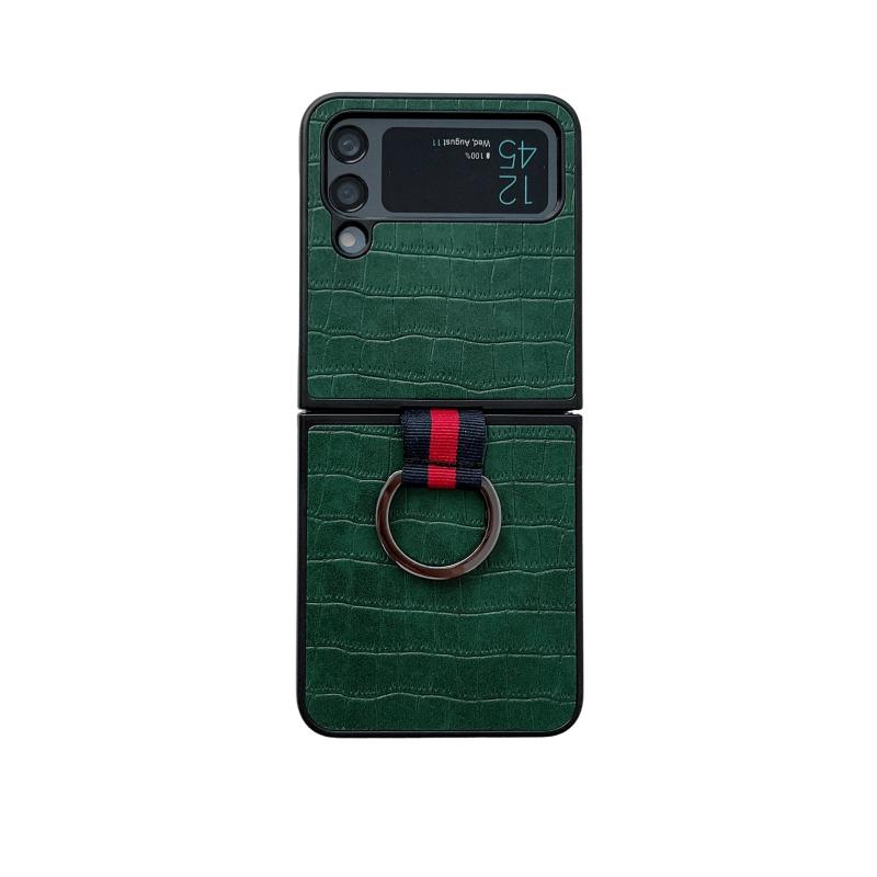 For Samsung Galaxy Z Flip4 Crocodile Texture PU Phone Case With Ring(Green)