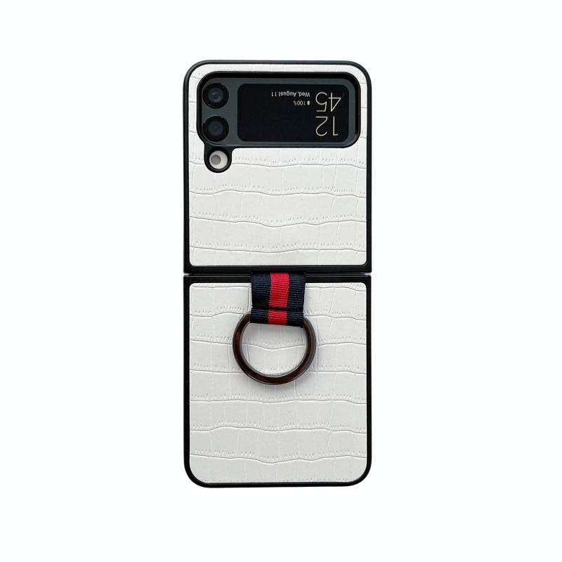 For Samsung Galaxy Z Flip4 Crocodile Texture PU Phone Case With Ring(White)