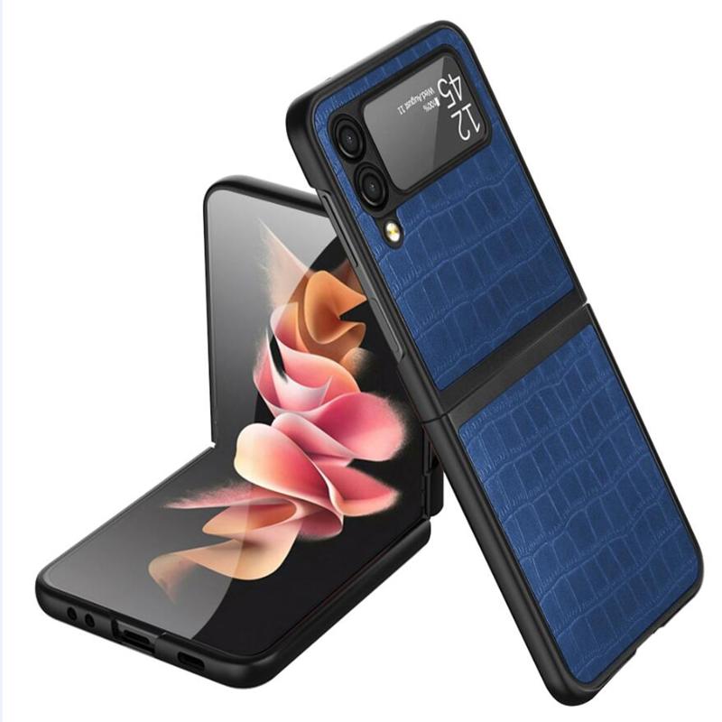For Samsung Galaxy Z Flip4 Crocodile Texture Ultra-thin Folding Phone Case(Blue)