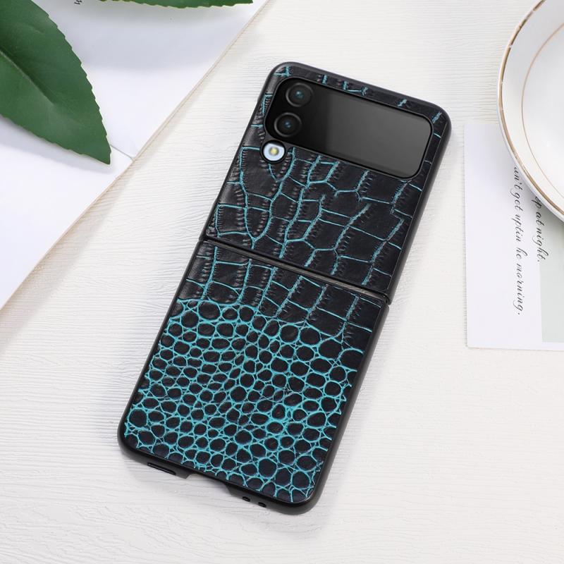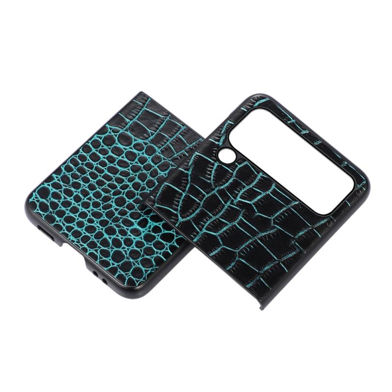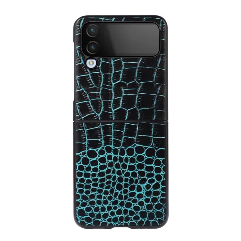 For Samsung Galaxy Z Flip4 Crocodile Top Layer Cowhide Leather Phone Case(Cyan Blue)