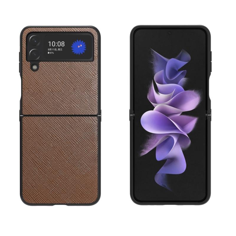 For Samsung Galaxy Z Flip4 Cross Texture Genuine Leather + TPU Phone Case(Brown)