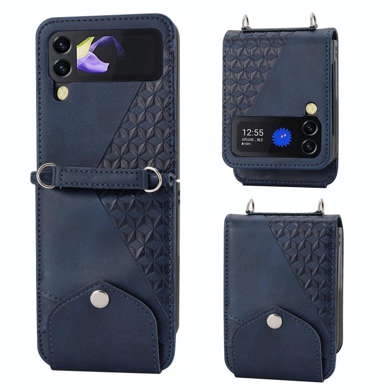 For Samsung Galaxy Z Flip4 Cubic Grid Calf Texture Leather Phone Case(Blue)