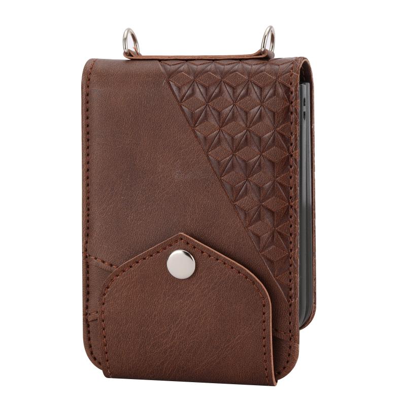 For Samsung Galaxy Z Flip4 Cubic Grid Calf Texture Leather Phone Case(Brown)