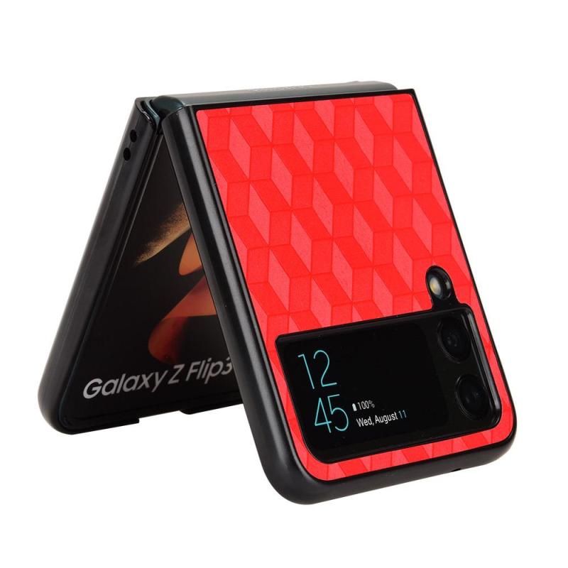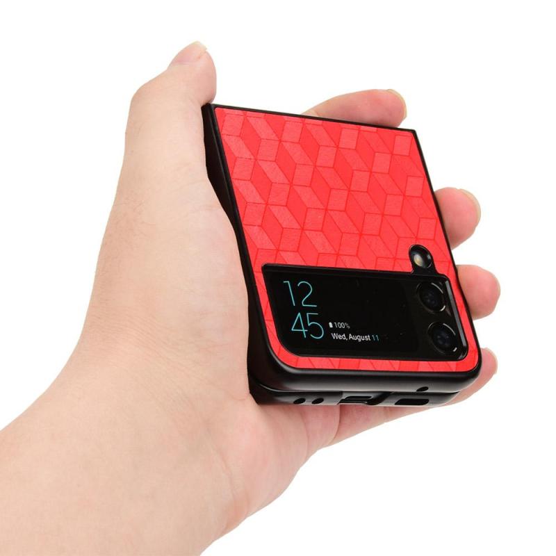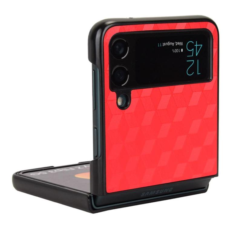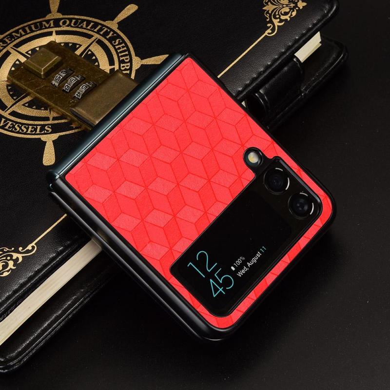 For Samsung Galaxy Z Flip4 Cubic Grid Texture Leather Back Cover Phone Case(Red)