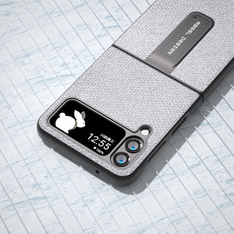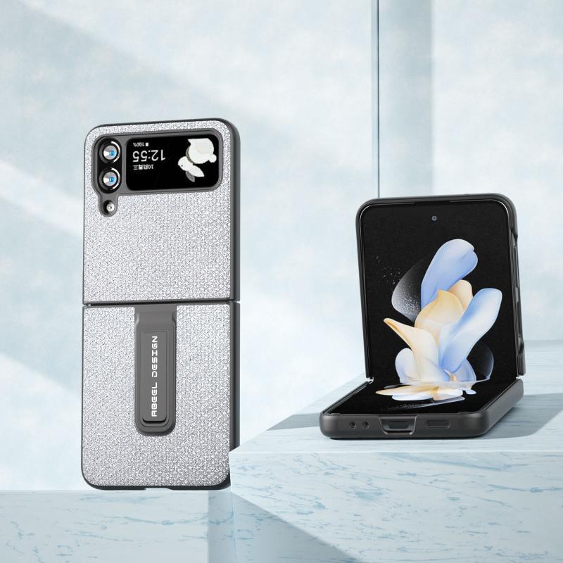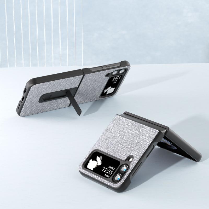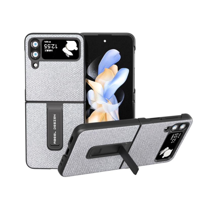 For Samsung Galaxy Z Flip4 Diamond Series Black Edge Phone Case with Holder(Silver)