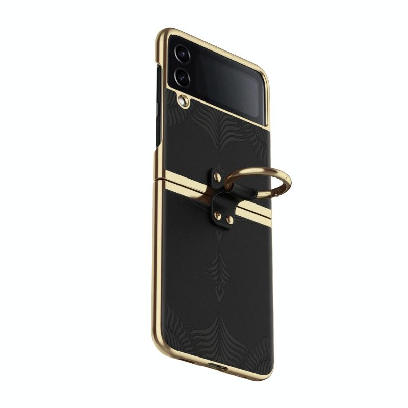 For Samsung Galaxy Z Flip4 Electroplated Embossed Leather Phone Case with Ring(Black)