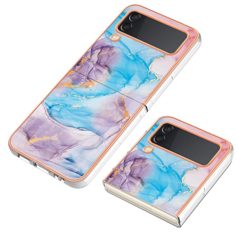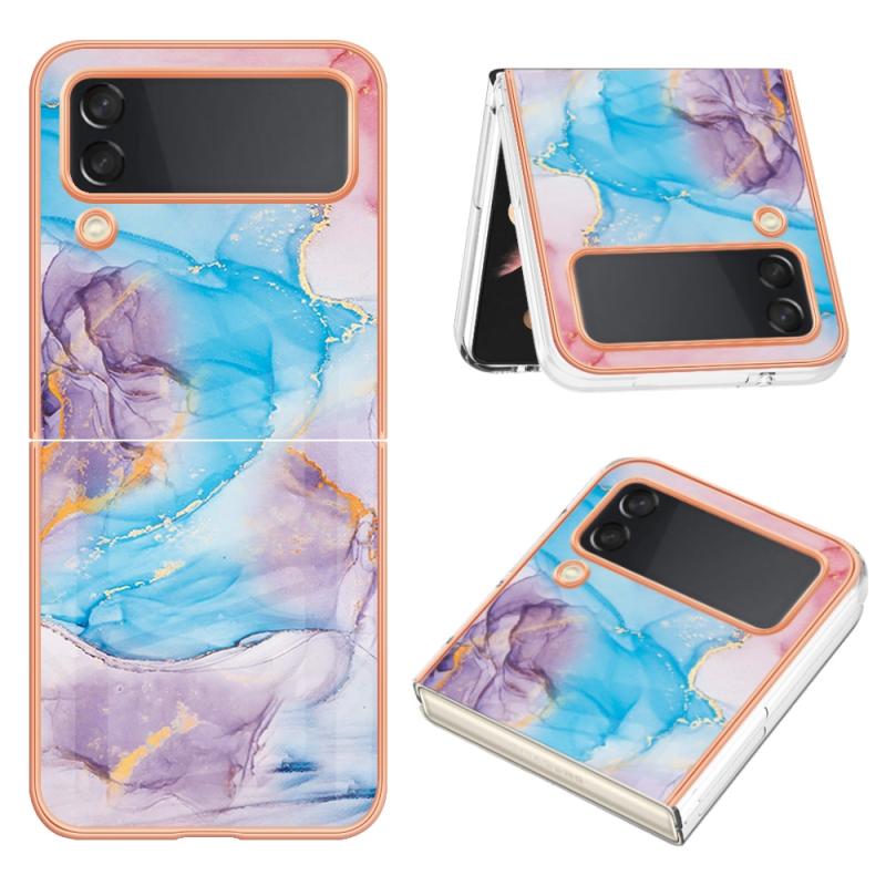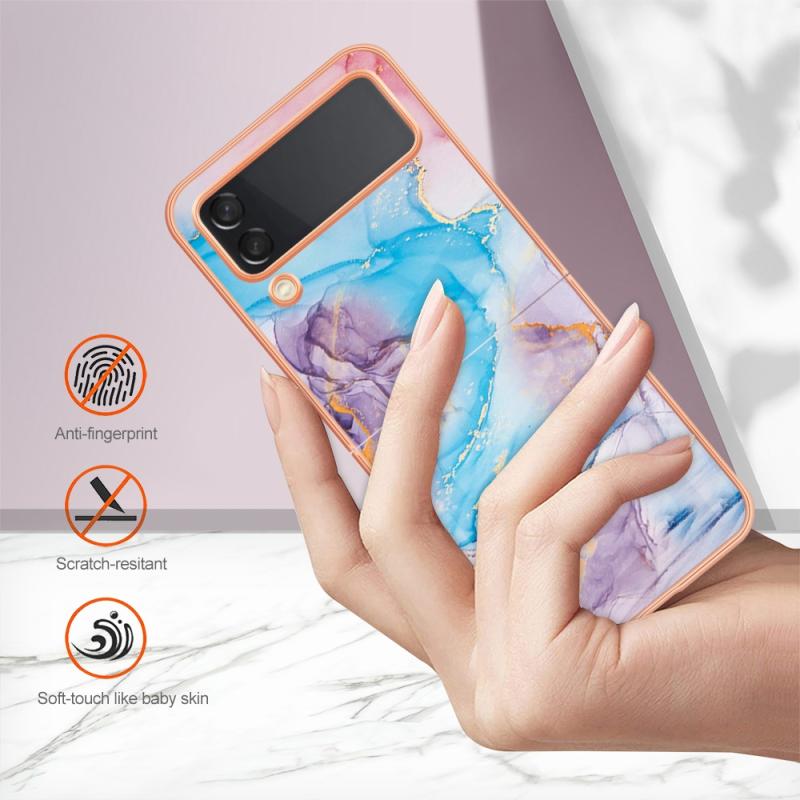 For Samsung Galaxy Z Flip4 Electroplating IMD TPU Phone Case with Ring(Blue Marble)