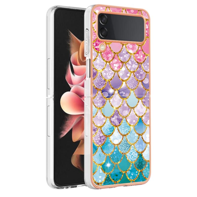 For Samsung Galaxy Z Flip4 Electroplating IMD TPU Phone Case with Ring(Colorful Scales)