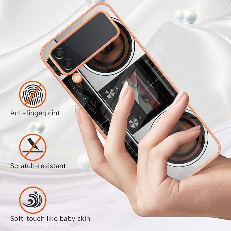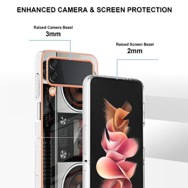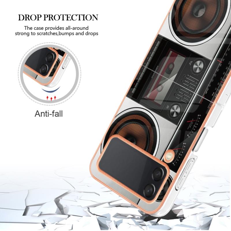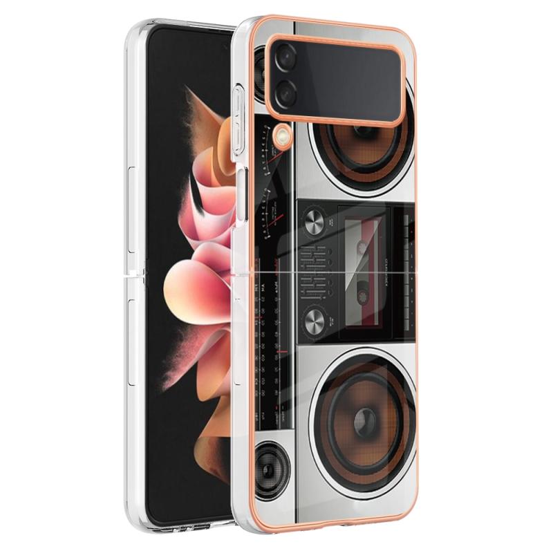 For Samsung Galaxy Z Flip4 Electroplating Marble Dual-side IMD Phone Case(Retro Radio)