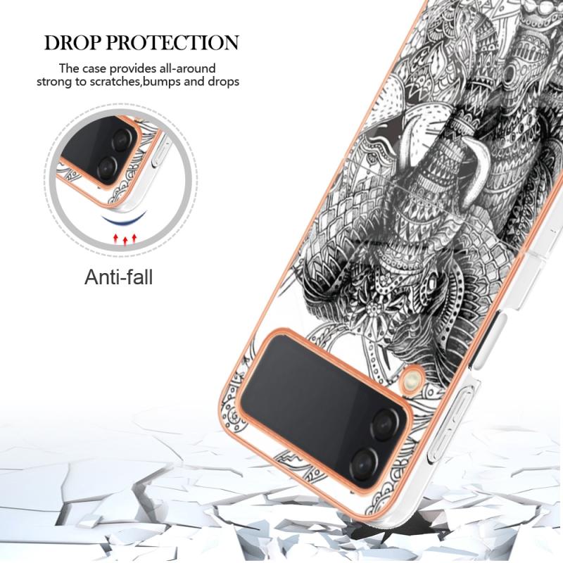 For Samsung Galaxy Z Flip4 Electroplating Marble Dual-side IMD Phone Case(Totem Elephant)