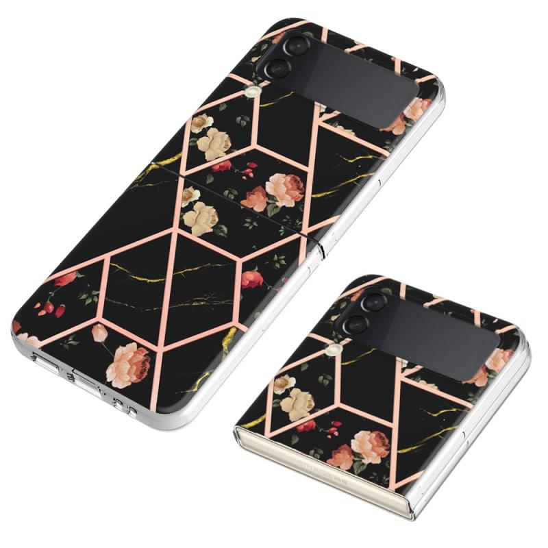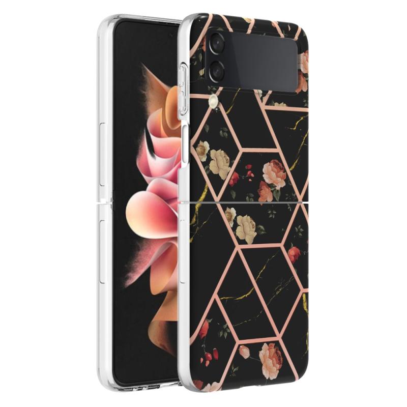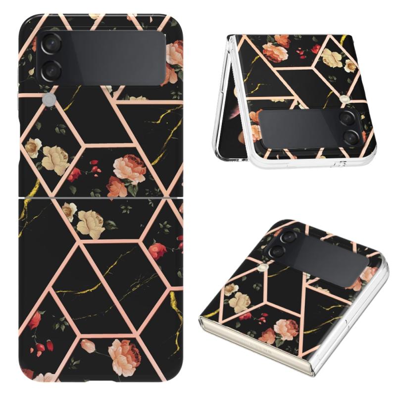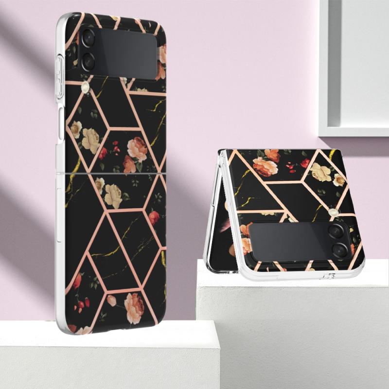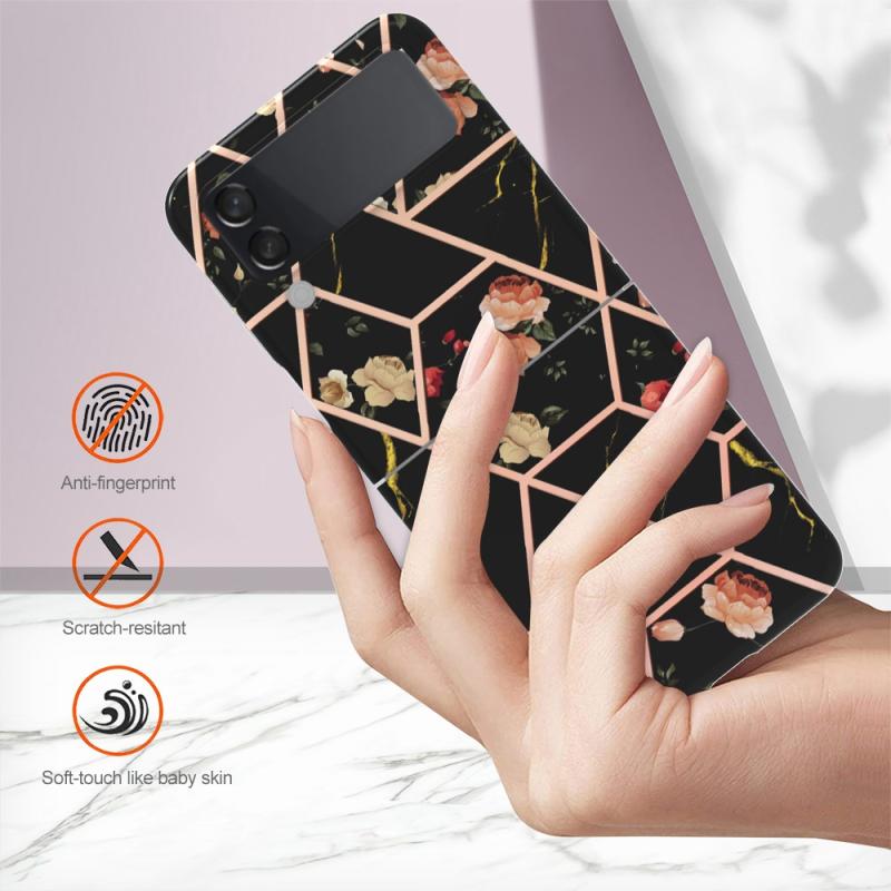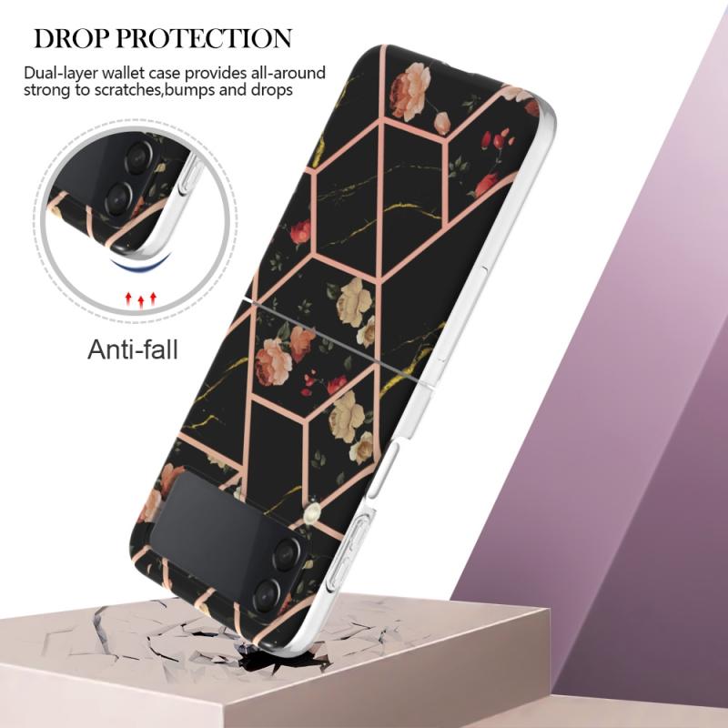 For Samsung Galaxy Z Flip4 Electroplating Marble Flower Pattern TPU Phone Case(Black Flower)