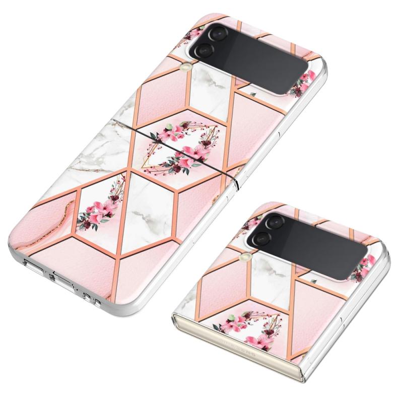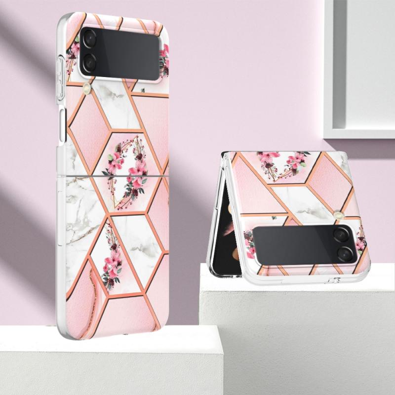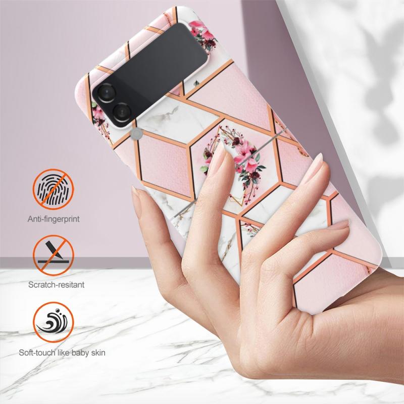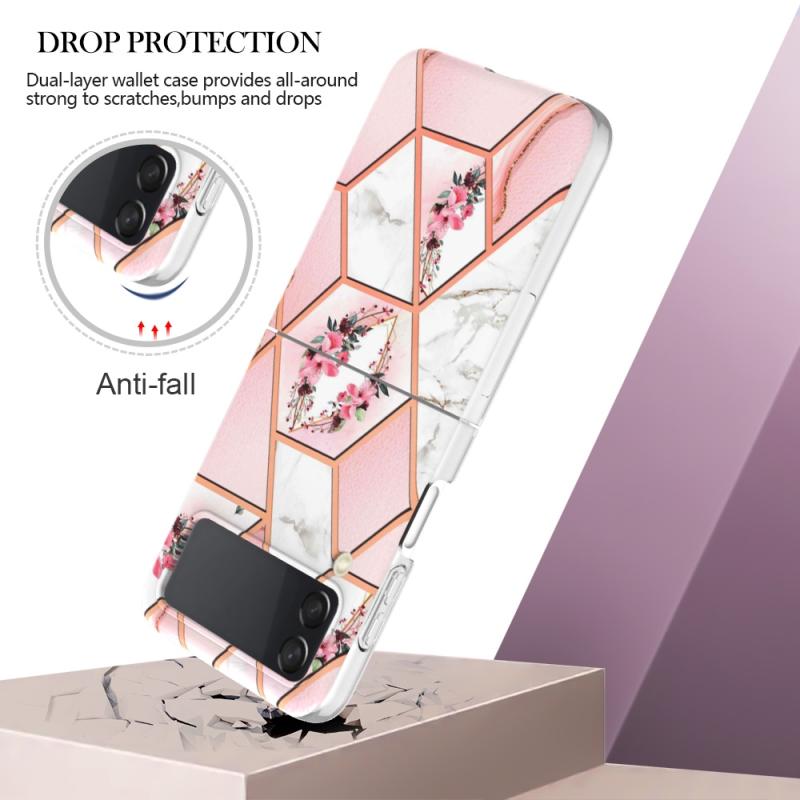 For Samsung Galaxy Z Flip4 Electroplating Marble Flower Pattern TPU Phone Case(Pink Flower)