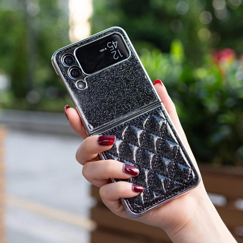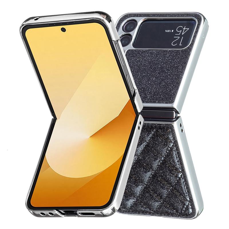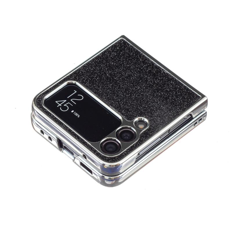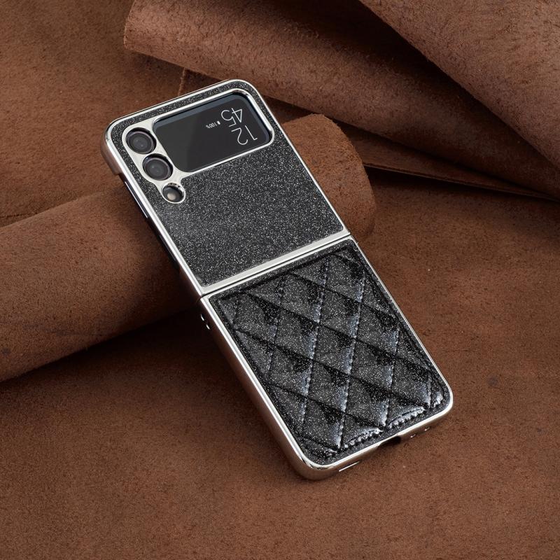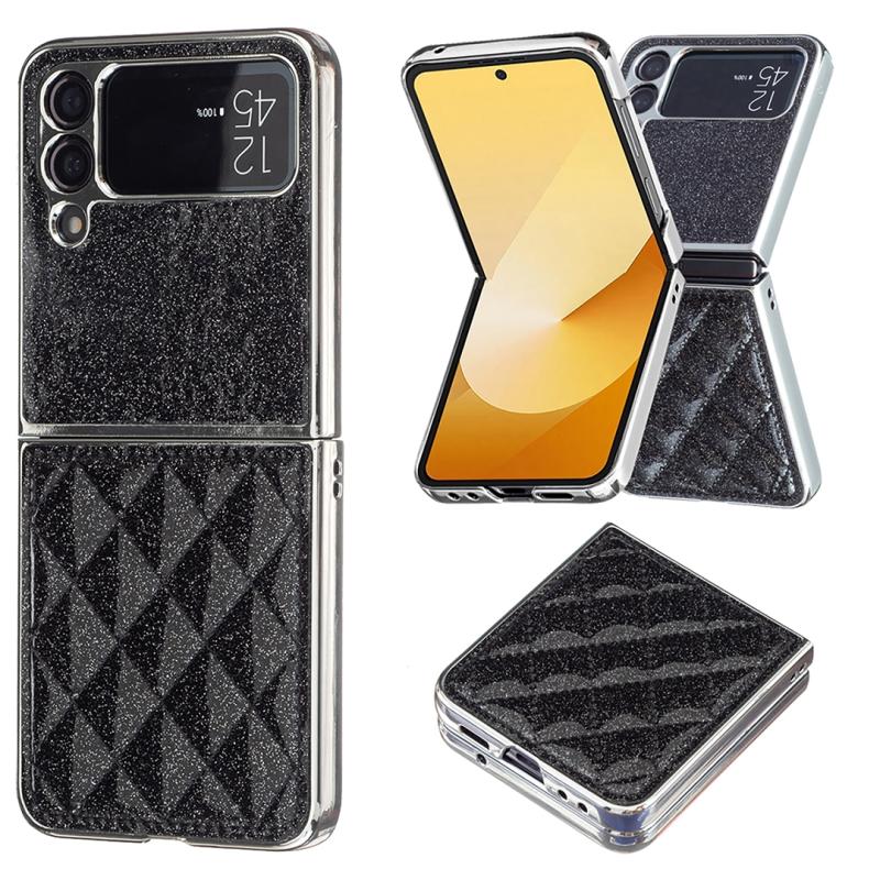 For Samsung Galaxy Z Flip4 Electroplating Rhombic Glitter PU Phone Case(Black)