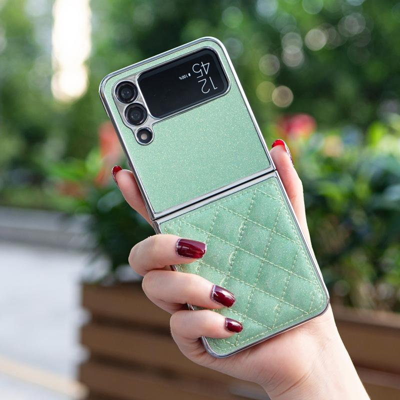 For Samsung Galaxy Z Flip4 Electroplating Rhombic Glitter PU Phone Case(Green)