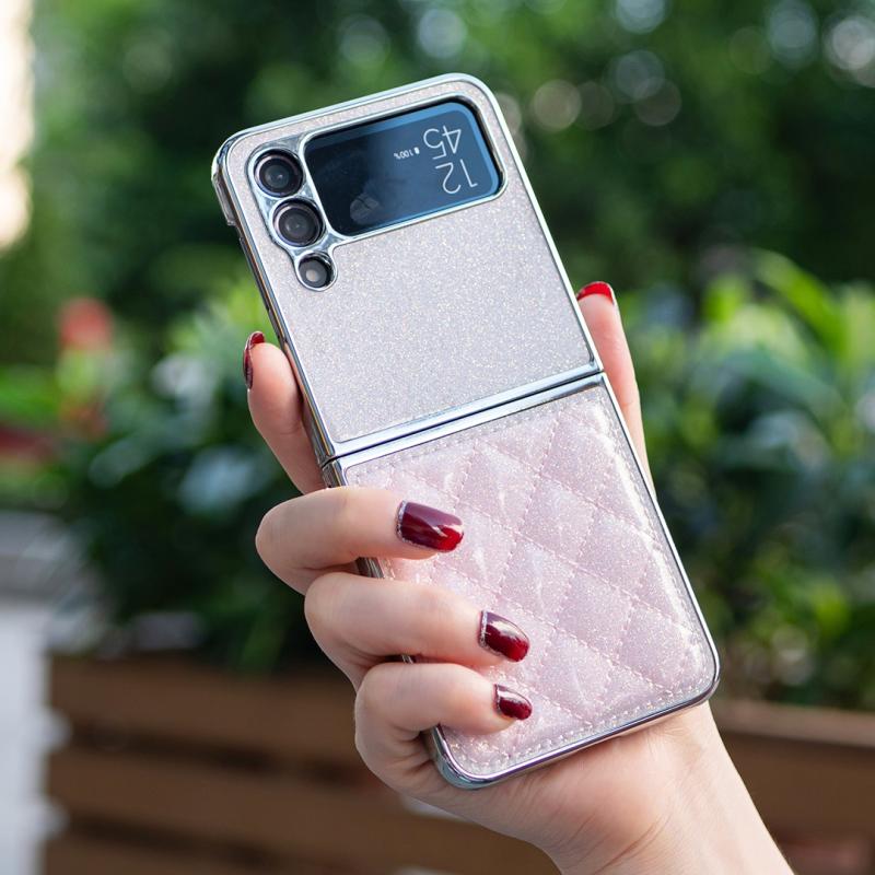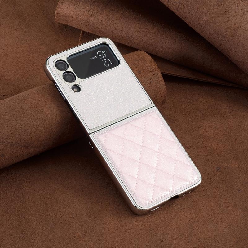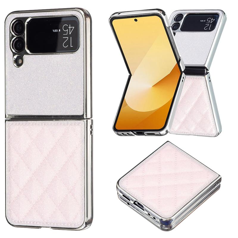 For Samsung Galaxy Z Flip4 Electroplating Rhombic Glitter PU Phone Case(Pink)