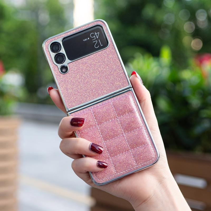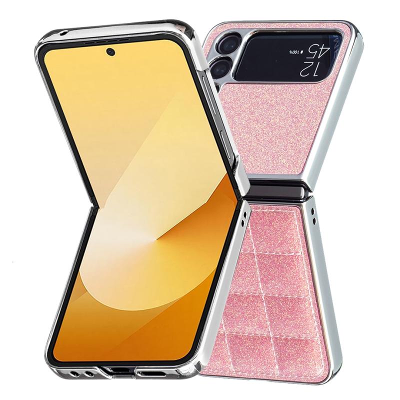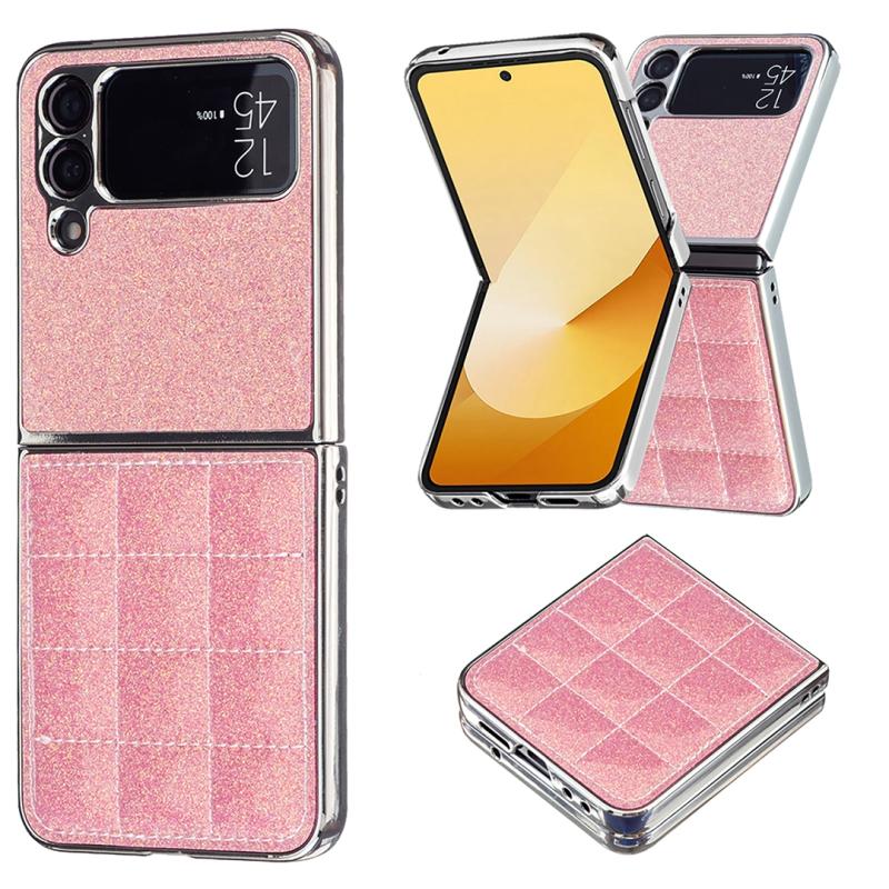 For Samsung Galaxy Z Flip4 Electroplating Square Glitter PU Phone Case(Rose Red)