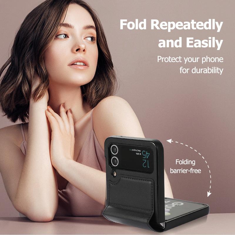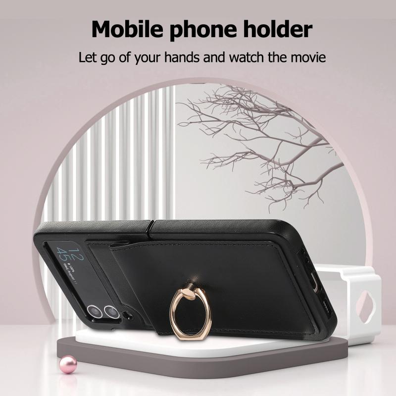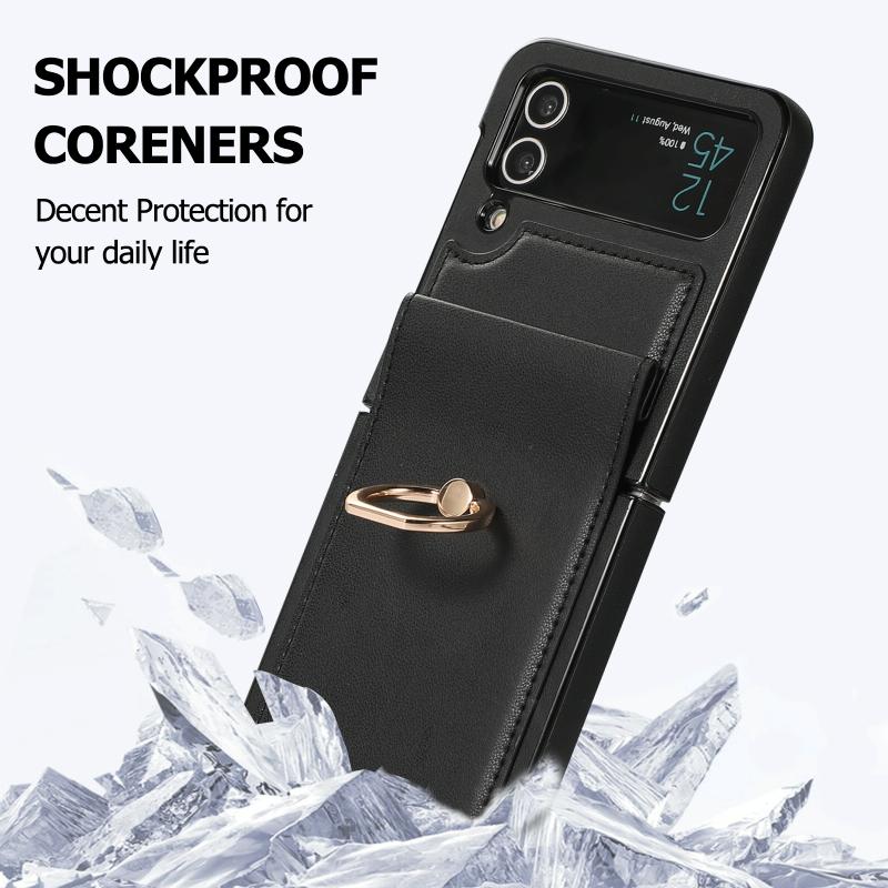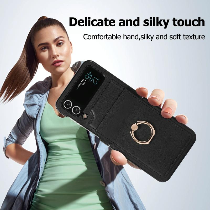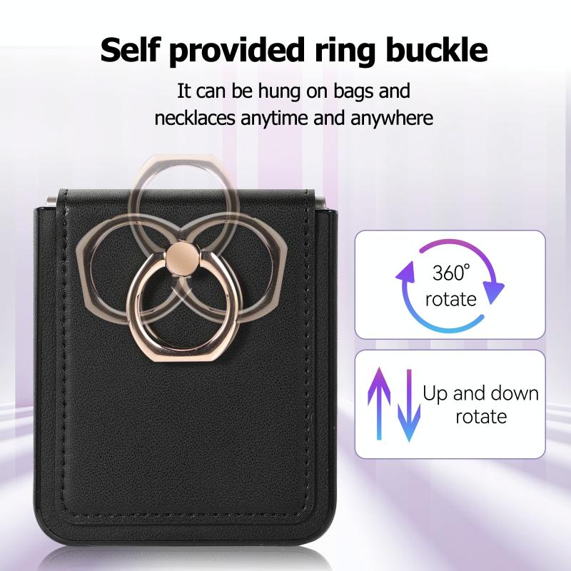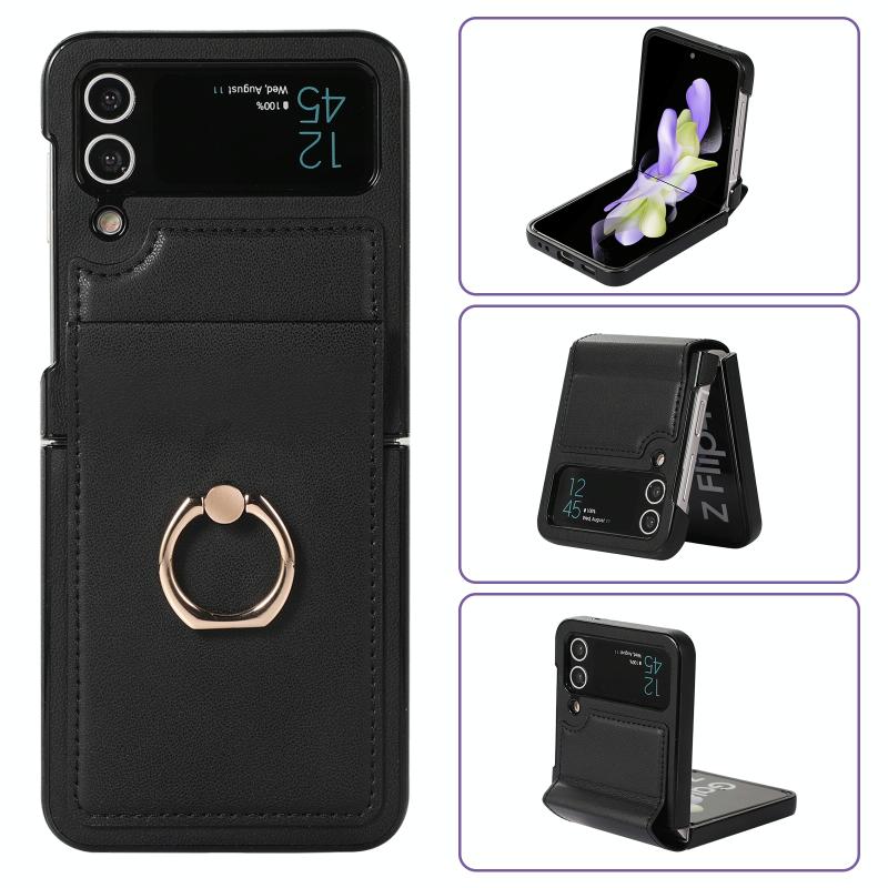 For Samsung Galaxy Z Flip4 Full Coverage Fold Solid Color PU Phone Case with Ring(Black)