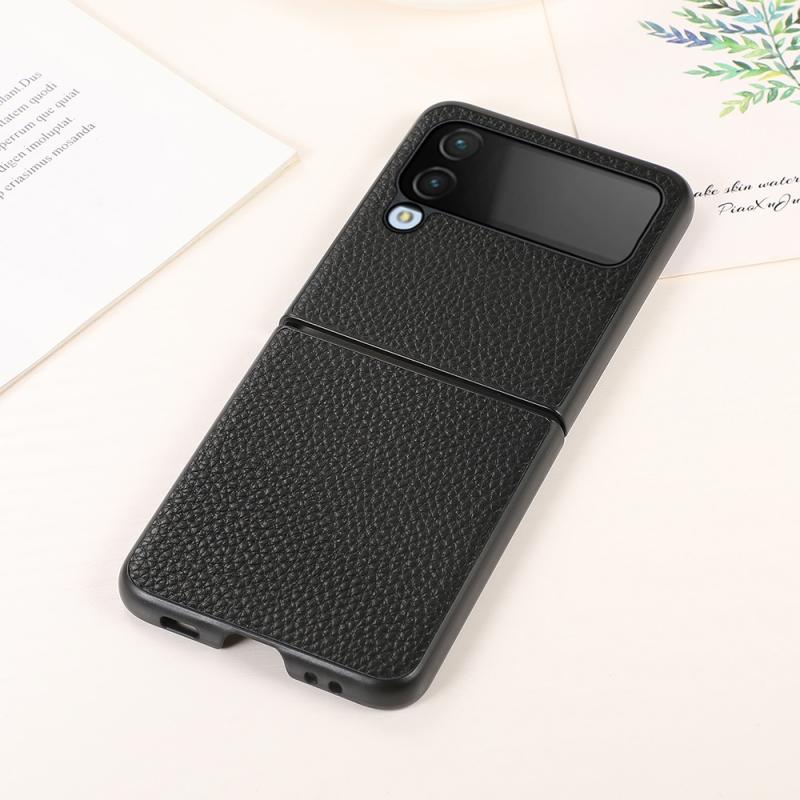 For Samsung Galaxy Z Flip4 Genuine Leather Lychee Texture Phone Case(Black)